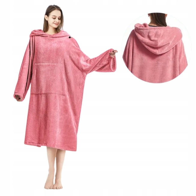 🏄♀️Wyposażony w dużą przednią kieszeń oraz obszerny kaptur, długość ręcznika do kolan,