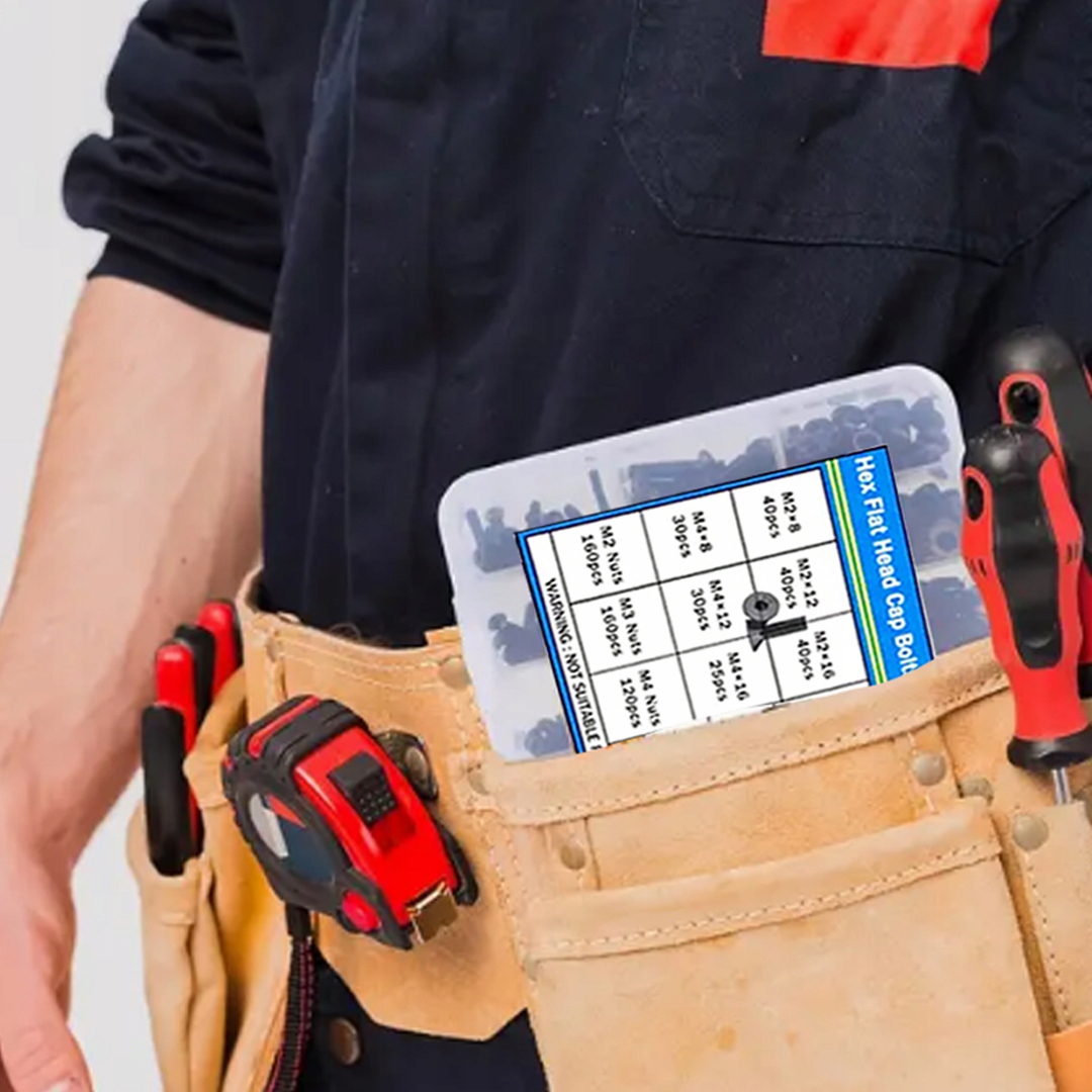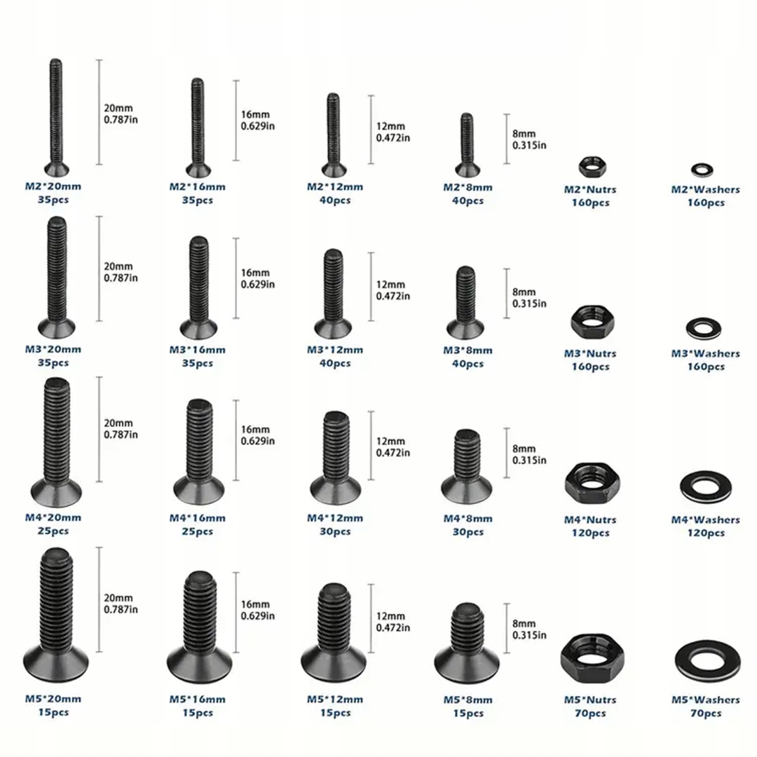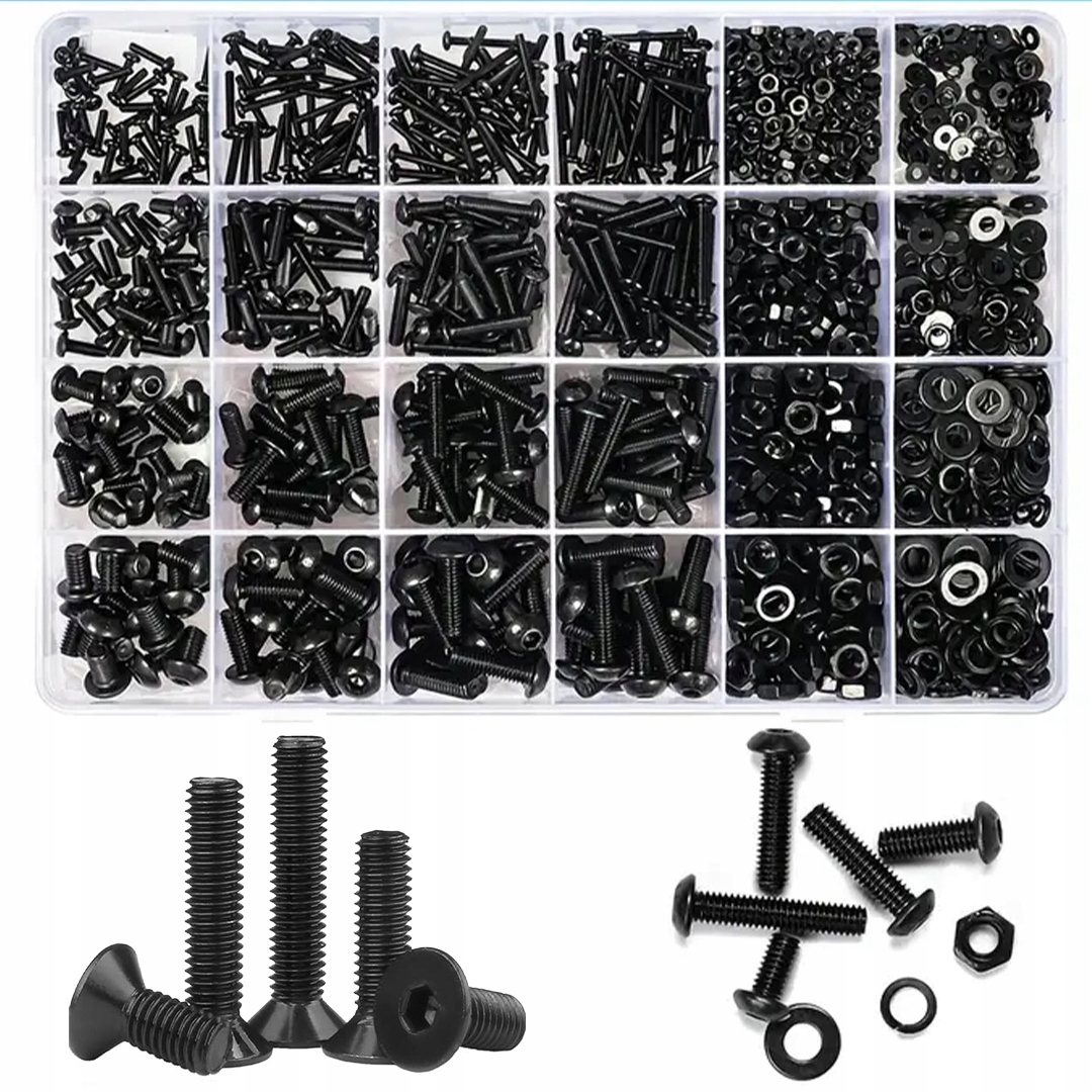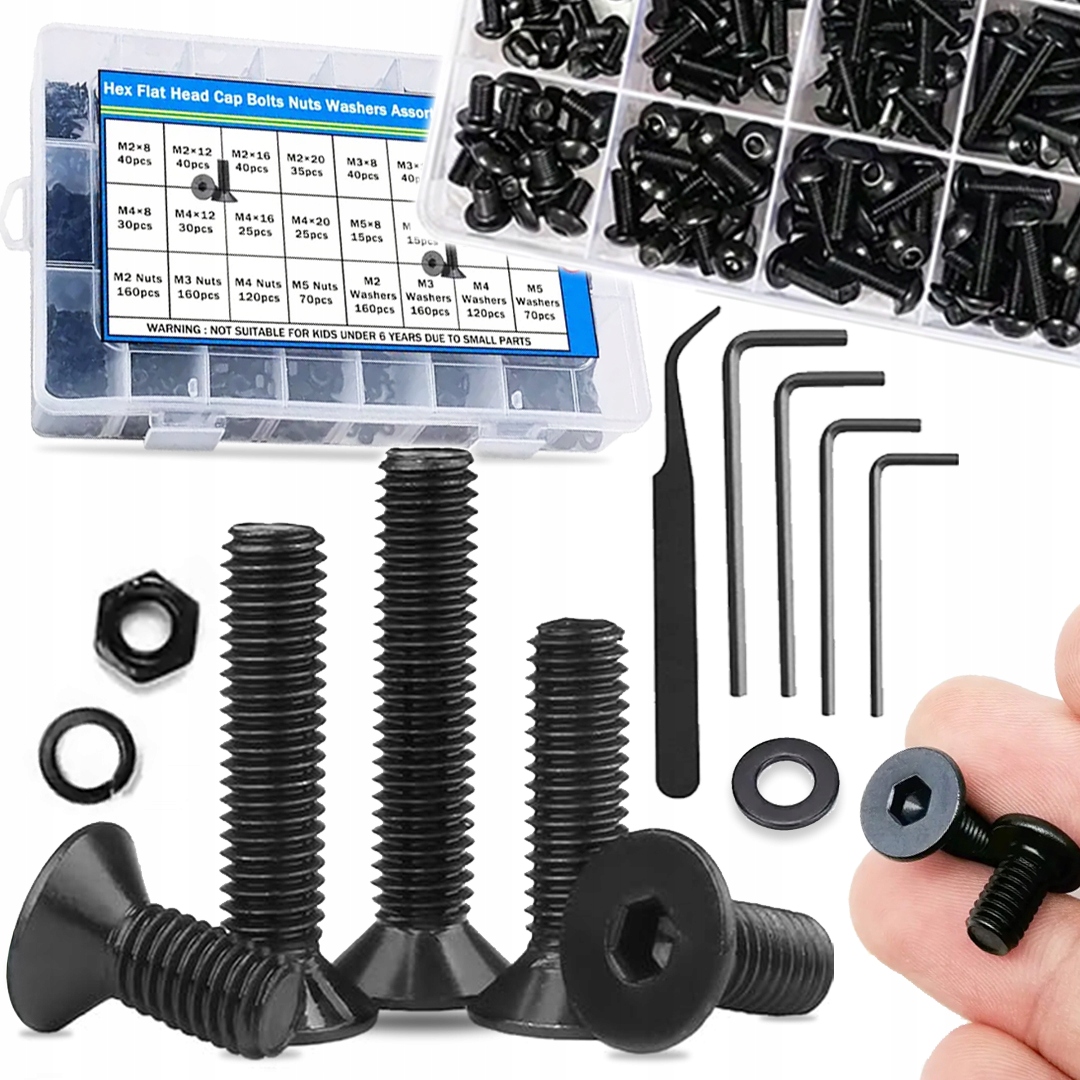 W jednym, praktycznym pudełku znajdziesz śruby imbusowe, nakrętki, podkładki, klucze imbusowe oraz pęsetę, czyli wszystko, czego potrzebujesz, by działać szybko, czysto i precyzyjnie.