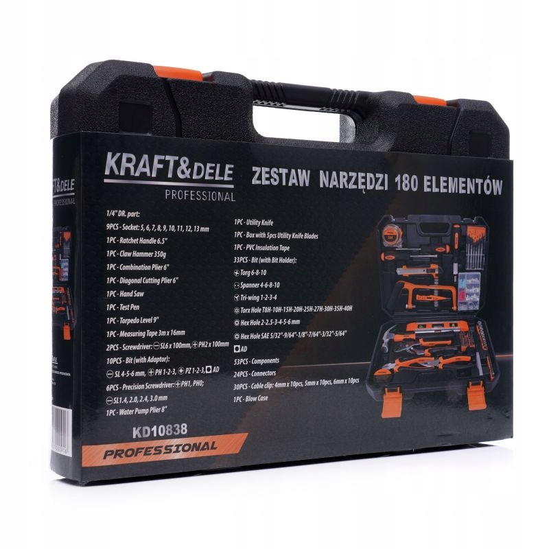 Niezwykle rozbudowany zestaw narzędzi marki Kraft&Dele o symbolu KD10838. Narzędzia cechuje solidne wykonanie, wytrzymałe materiały oraz poręczna walizka, w której każde narzędzie ma swoje miejsce.