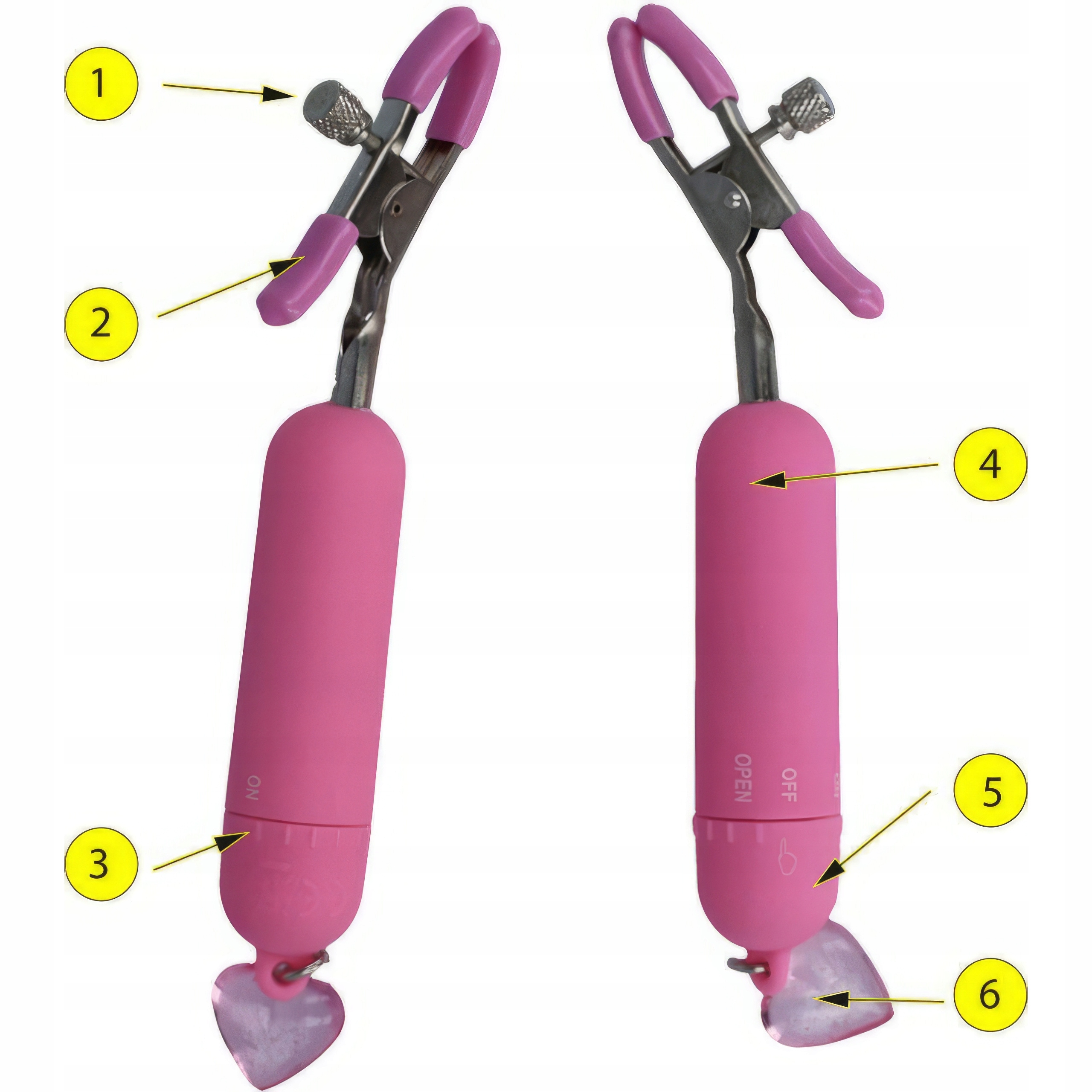 Zakładanie klipsów jest niezwykle proste, a jednocześnie daje ogrom możliwości. Wystarczy umieścić je na sutkach, wyregulować śrubką odpowiedni ucisk i włączyć wibracje, aby poczuć, jak Twoje ciało reaguje błyskawicznie na nowe bodźce.