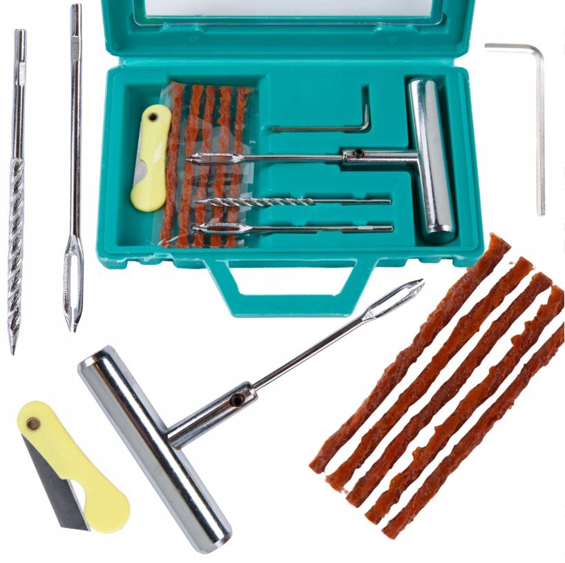 Zestaw naprawczy do opon. Zastosowanie zestawu do napraw opon umożliwia szybką, skuteczną oraz tanią naprawę uszkodzeń typu pogwoździowego.