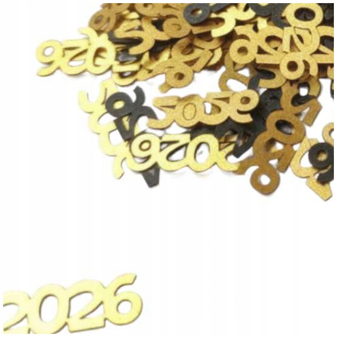Przygotowujesz się do hucznych obchodów nadejścia Nowego Roku? Podczas imprezy sylwestrowej zdecydowanie nie może zabraknąć efektownych dekoracji, które sprawią, iż ten wyjątkowy dzień zapadnie na długo w pamięć wszystkim imprezowiczom! Tradycyjną i bardzo atrakcyjną ozdobę z całą pewnością stanowić będzie piękne konfetti! Dekoracja ma postać napisu 2026 w metalicznym, czarno-złotym kolorze. Konfetti możesz rozsypać na stole, dodać do zaproszeń lub wykorzystać jako uzupełnienie dekoracji balonowych. Całość prezentuje się bardzo efektownie i elegancko.