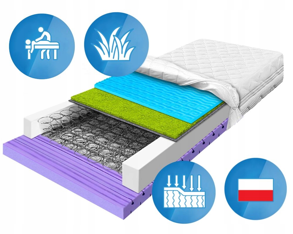 Decydując się na matę z naszej oferty, masz gwarancję, że jej właściwości i jakość będą utrzymane przez cały okres eksploatacji materaca.