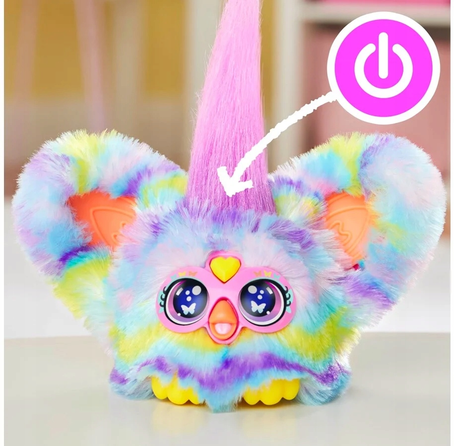 Naciśnij pysk, a zabrzmi słodki dźwięk karmienia. Naciśnięcie klejnotu serca spowoduje włączenie muzyki. Przełącznik w główce aktywuje zabawne frazy w języku Furbisch, a także służy jako włącznik