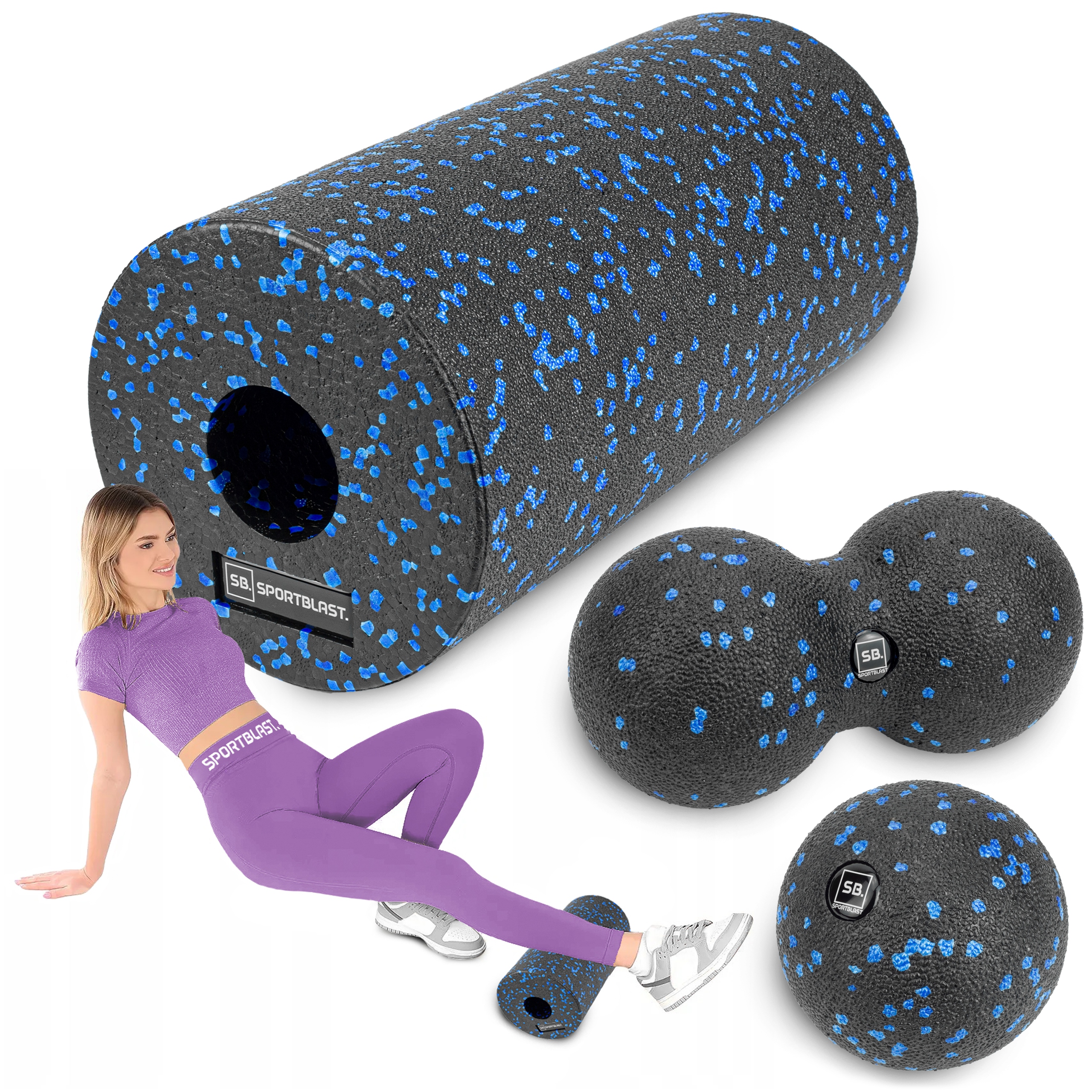 ZESTAW do masażu z pianki EPP ROLLER/WAŁEK, DUOBALL i PIŁKA 3w1!