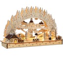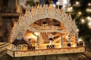 Ukryta komora na baterie pod podstawą pozwala umieścić łuk w dowolnym miejscu, niezależnie od gniazdka elektrycznego. Ciepłe białe diody LED tworzą przyjemną, świąteczną atmosferę, a praktyczny timer (6 godzin włączone / 18 godzin wyłączone) automatycznie włącza światło każdego wieczoru.