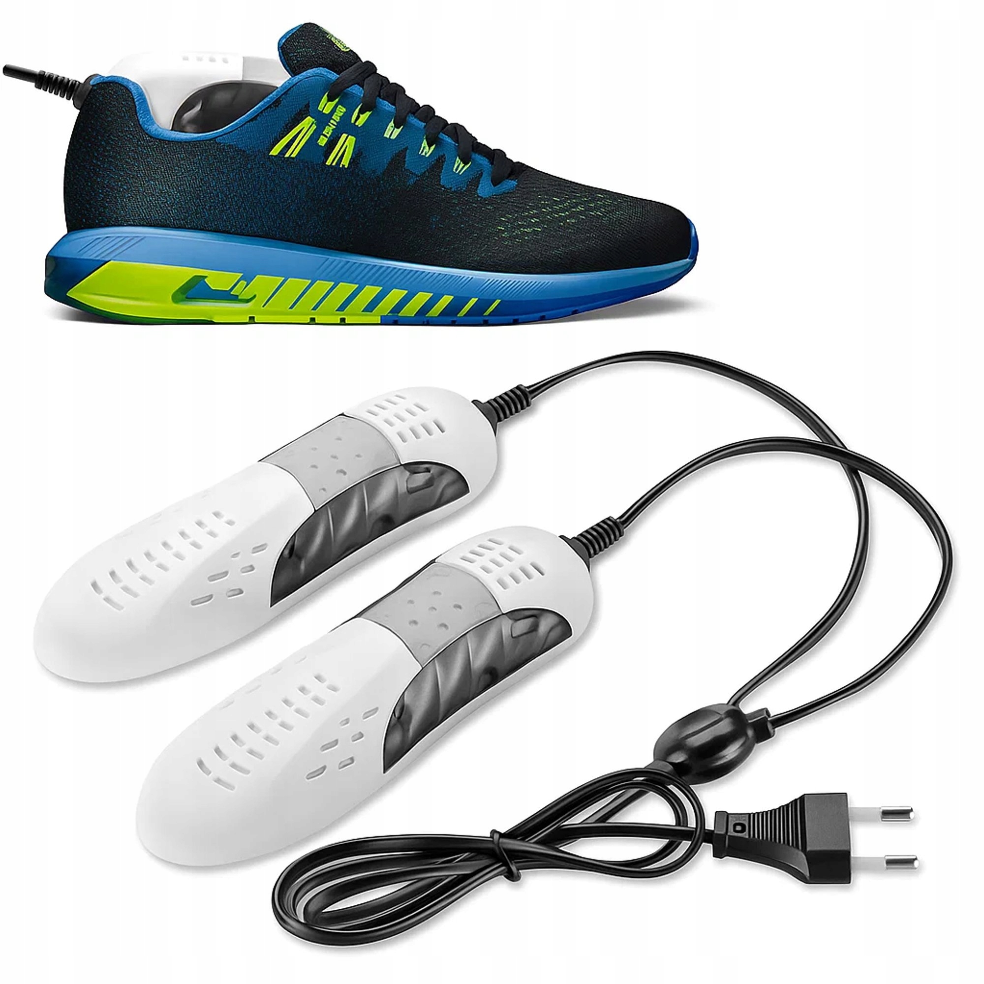 Prosta w obsłudze – Wystarczy umieścić suszarkę we wnętrzu buta i podłączyć ją do sieci elektrycznej. Suszarka działa szybko i skutecznie, dbając o to, aby Twoje buty były suche i gotowe do ponownego użycia w krótkim czasie ⏱️.