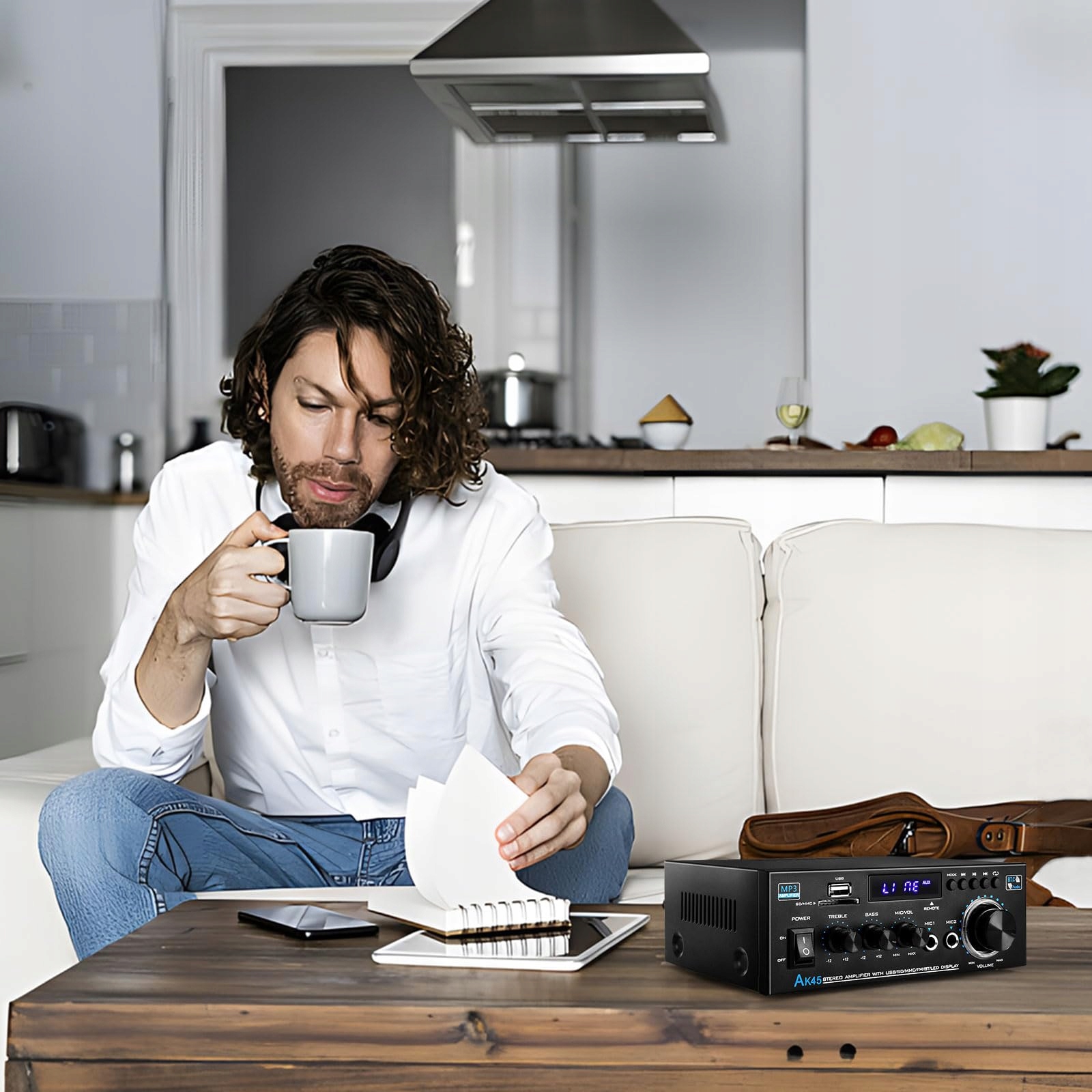 Wzmacniacz audio AK-45 jest szeroko kompatybilny z telefonami komórkowymi, komputerami, tabletami, notebookami, odtwarzaczami MP3, MP4, telewizorami i projektorami z dźwiękiem AV itp.