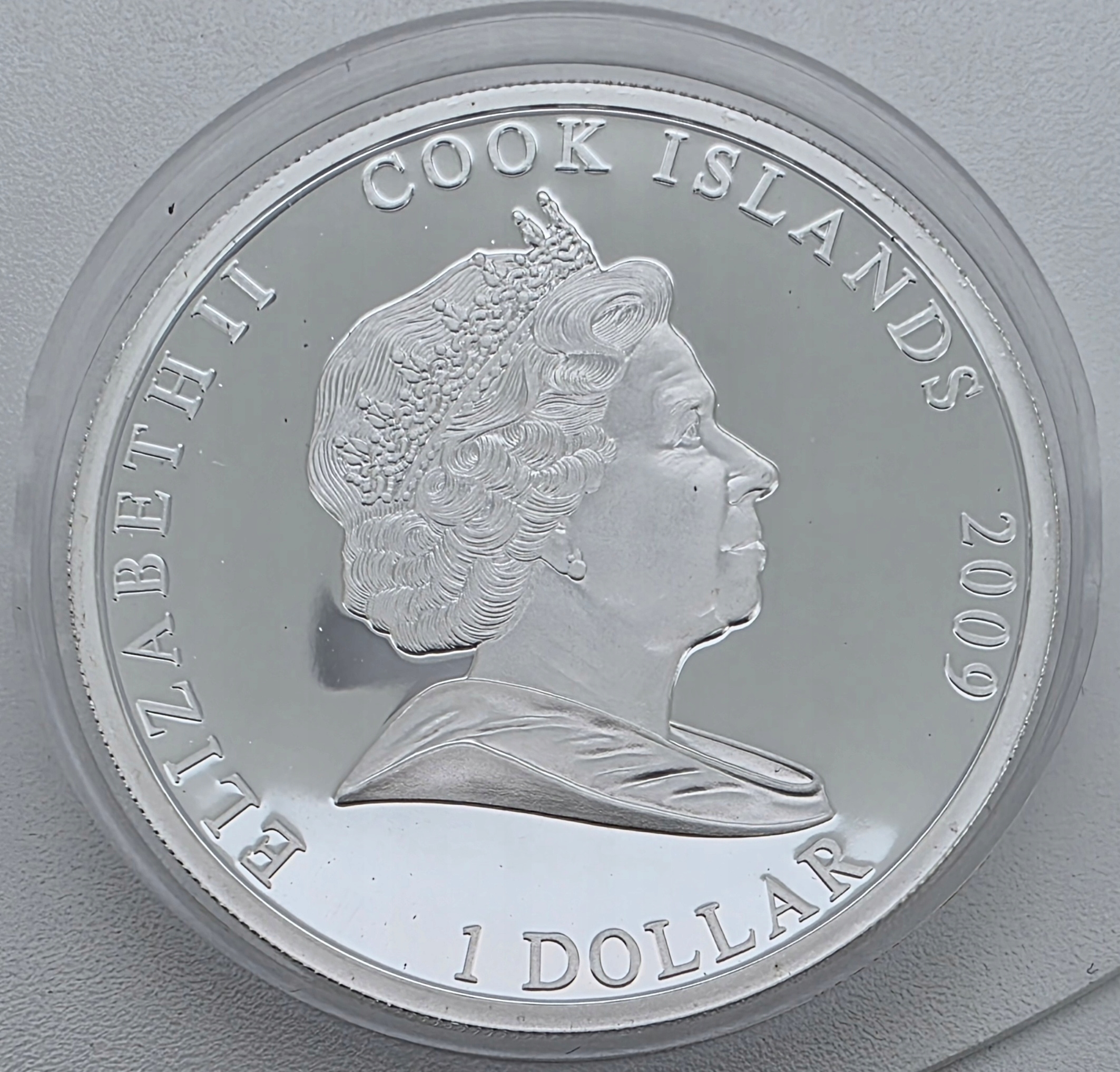 Portret Królowej Elżbiety II, napisy: ELIZABETH II – COOK ISLANDS – 2009 – 1 DOLLAR