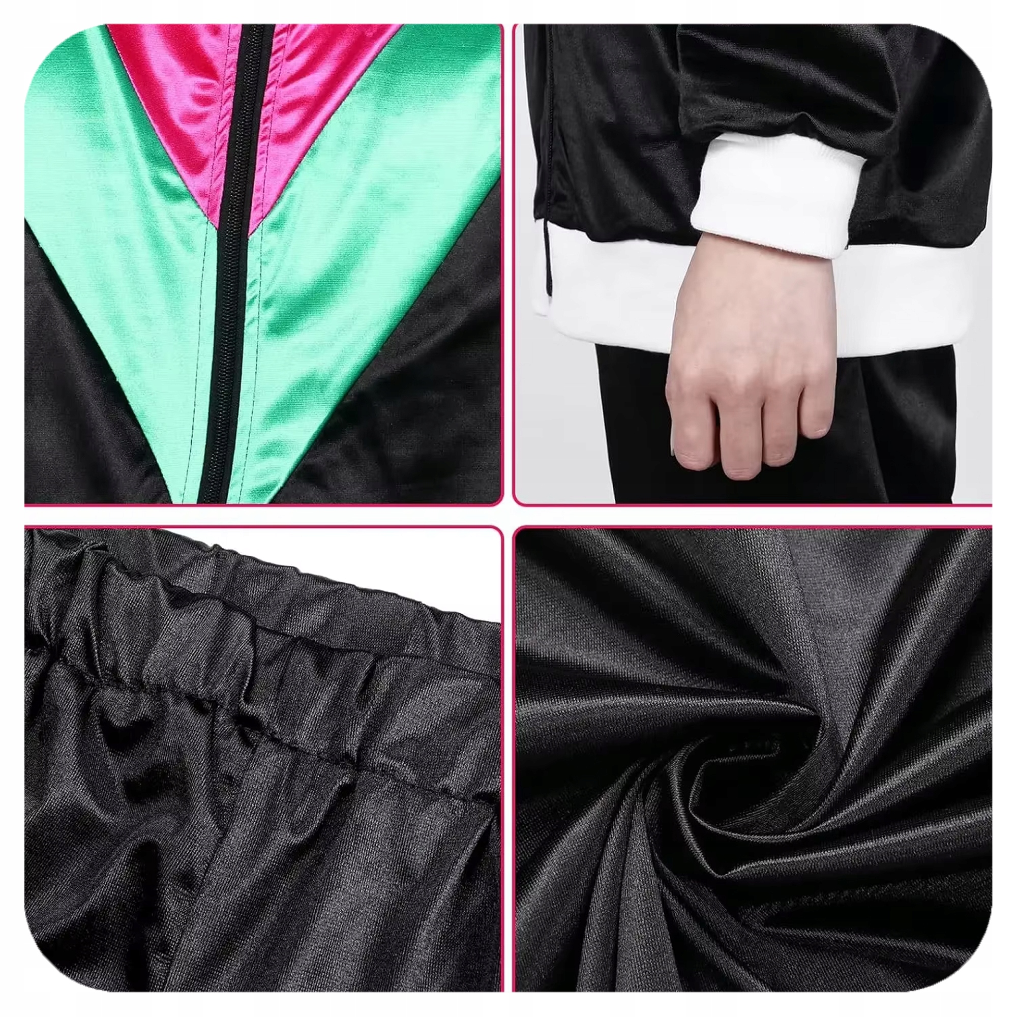 Ten wyjątkowy czarny dres retro w rozmiarze L to połączenie klasyki lat 80. i 90. z nowoczesną wygodą. Idealny jako strój na imprezy tematyczne, przebranie karnawałowe, sesje zdjęciowe lub po prostu luźny zestaw streetwearowy na co dzień.