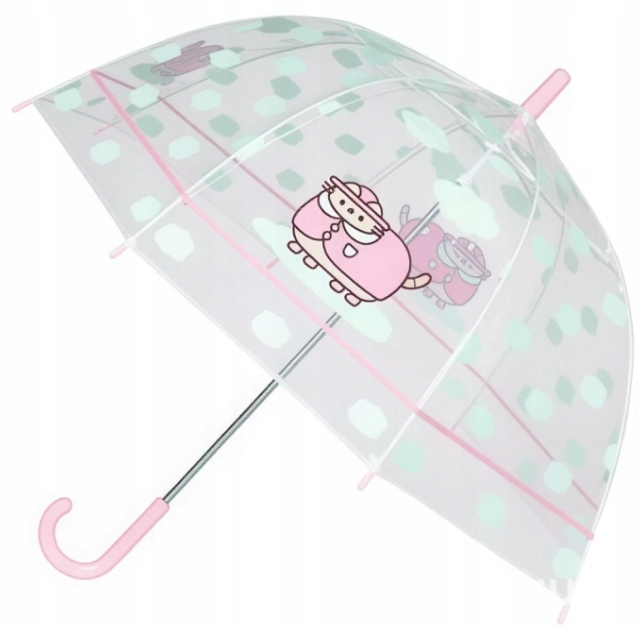 Parasol Pusheen to idealna rzecz dla wszystkich fanatyków serii związanej z Pusheen. Parasol posiada manualne otwieranie oraz zamykanie. Jest on przezroczystego koloru z chmurkami oraz uroczym Pusheen w płaszczu przeciwdeszczowym.