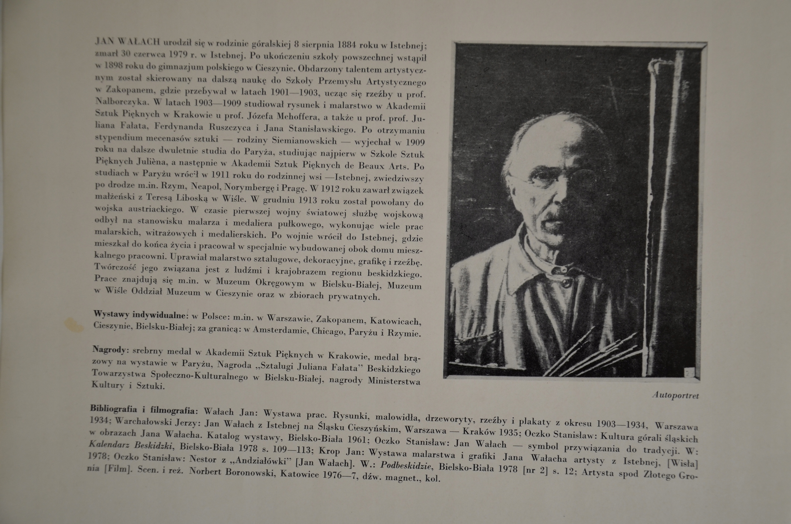 Jan Wałach urodził się w 1884 roku. Pochodził z rodziny górali beskidzkich z Istebnej. Był uczniem Józefa Mehoffera, Juliana Fałata, Ferdynanda Ruszczyca, Jana Stanisławskiego. Dzięki stypendium ASP studiował w prywatnej Academie Julien w Paryżu i w paryskiej Ecole de Beaux Arts w pracowni francuskiego malarza Fernanda Cormona (jego uczniami byli również (Henri Marret, Henri Matisse, Henri de Toulouse-Lautrec, Vincent van Gogh). Do Istebnej wrócił w 1911 roku. Podczas I wojny służył w wojsku austriackim jako malarz i medalier, rysował mapy, malował portrety żołnierzy i obrazy z pola walki, jednocześnie przemierzając z 100. Pułkiem Ziemi Cieszyńskiej niemal cały łuk Karpat. Po wojnie został odznaczony złotym krzyżem zasługi z koroną za waleczność. Debiutował wystawą rysunku w 1904 r. w Mińsku. "Odkryty" i systematycznie promowany przez swego długoletniego mecenasa, Jerzego Warchałowskiego, wystawiał później swe prace na wystawach zbiorowych w Krakowie, Katowicach i Warszawie. Po II wojnie nadal mieszkał i tworzył w Istebnej. Tworzył do 95 roku życia, zmarł w 1979 r.