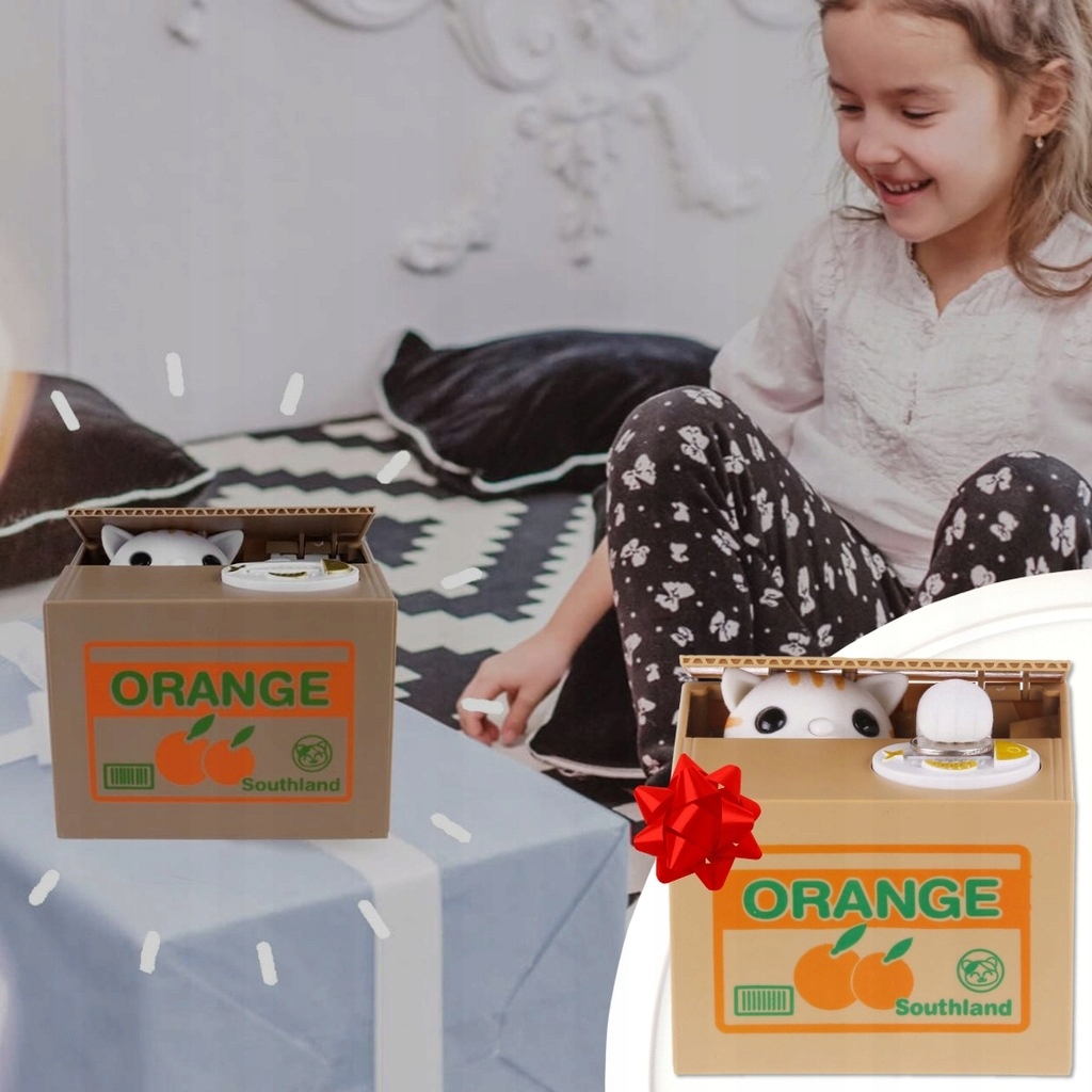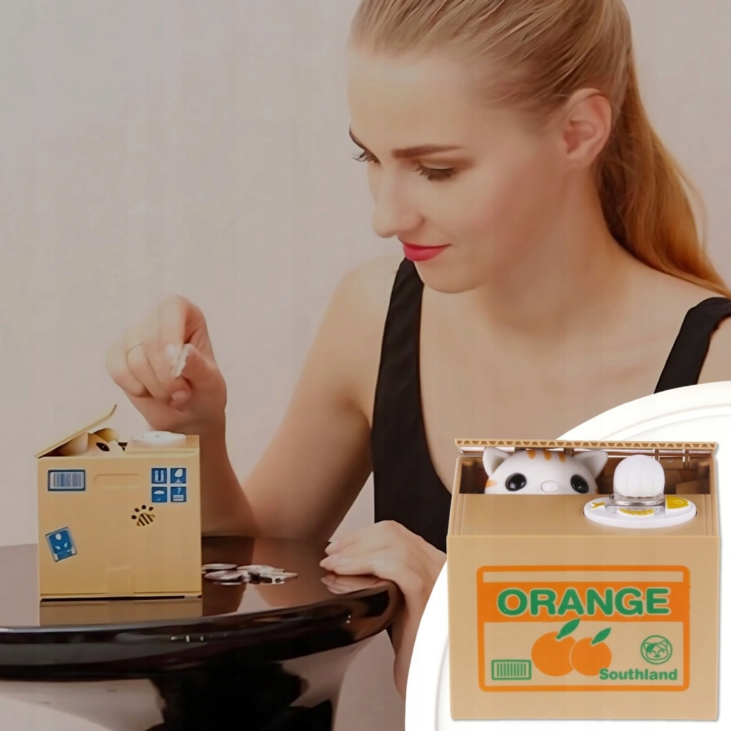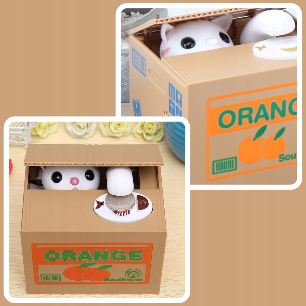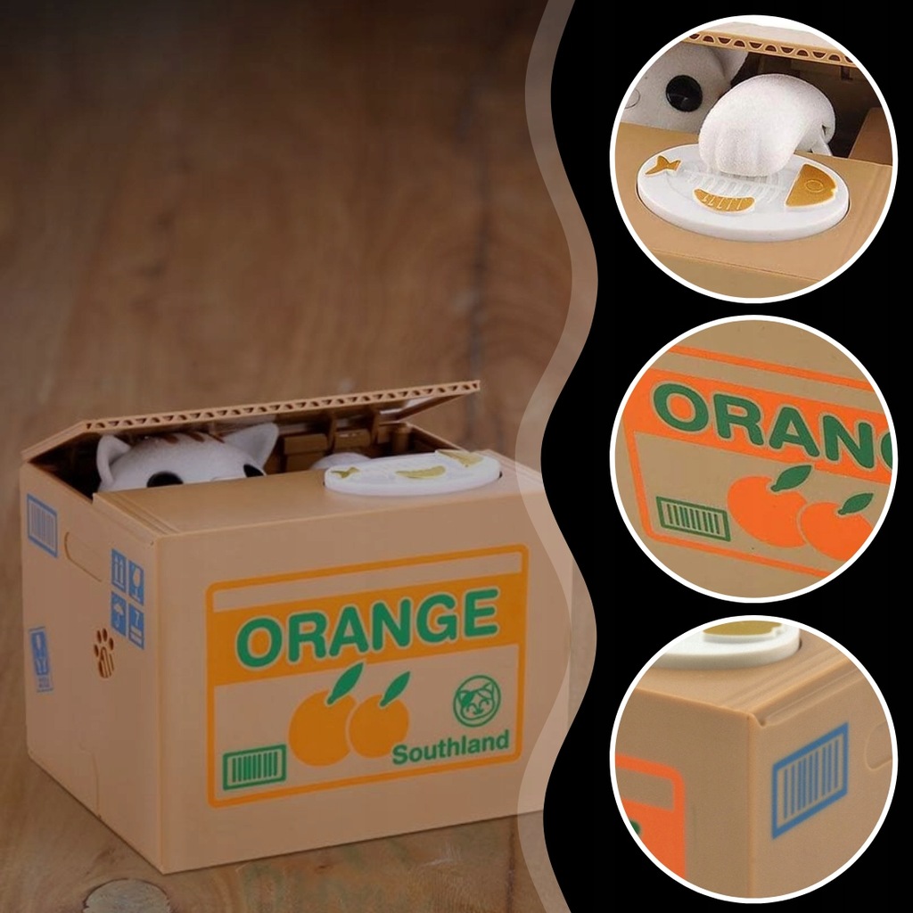 ➡️ ŁATWA OBSŁUGA – wystarczy położyć monetę na talerzyku, a kotek sam sięgnie łapką i schowa ją do środka.