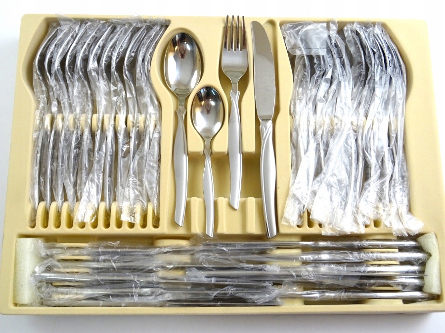 Wysokiej jakości zestaw sztućców dla 12 osób z wykończeniem satynowym w kolorze srebra wykonane ze stali nierdzewnej.Sztućce wykonane są estetycznie i starannie z wysokiej jakości stali nierdzewnej.Zestaw posiada certyfikat jakości dołączony do kompletu.