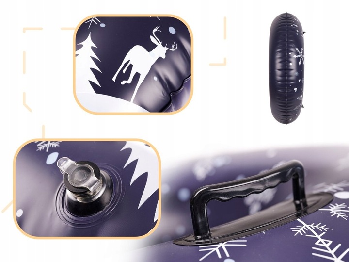 ✨Po spuszczeniu powietrza zajmuje bardzo mało miejsca, co ułatwia przechowywanie i transport. Jest lekki, poręczny i łatwy do przenoszenia, dzięki czemu świetnie sprawdzi się podczas zimowych wyjazdów i spontanicznych zabaw na śniegu.