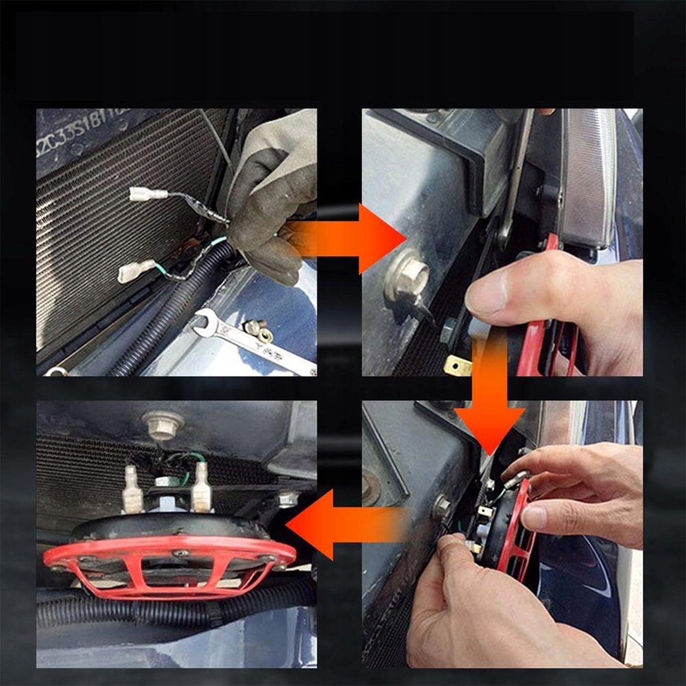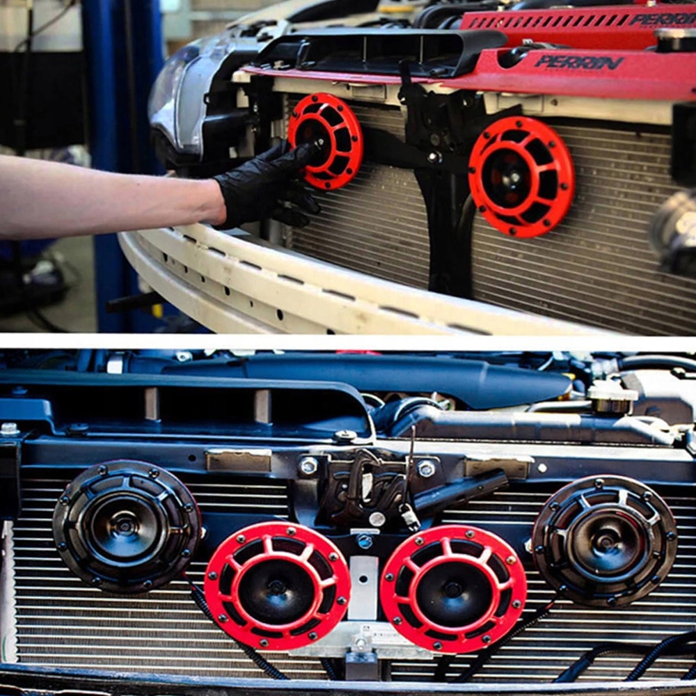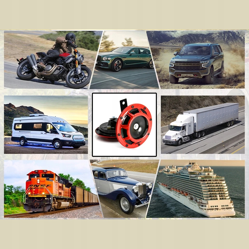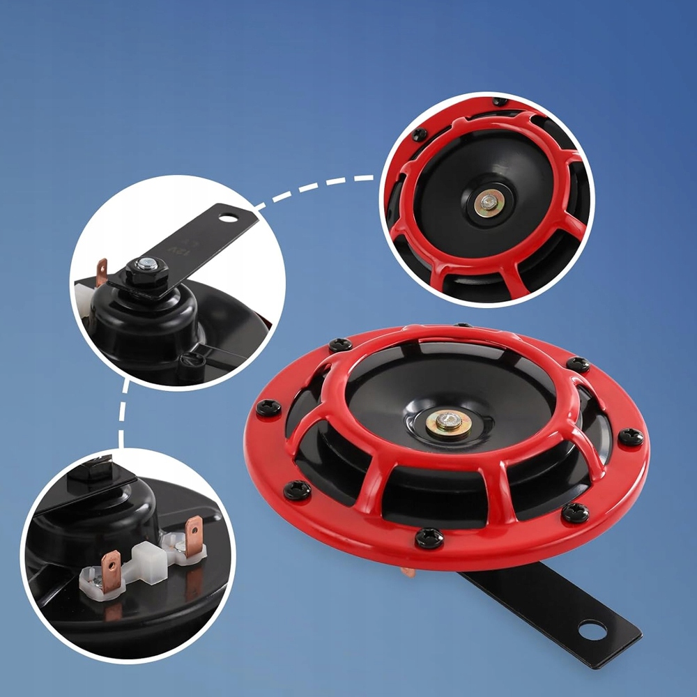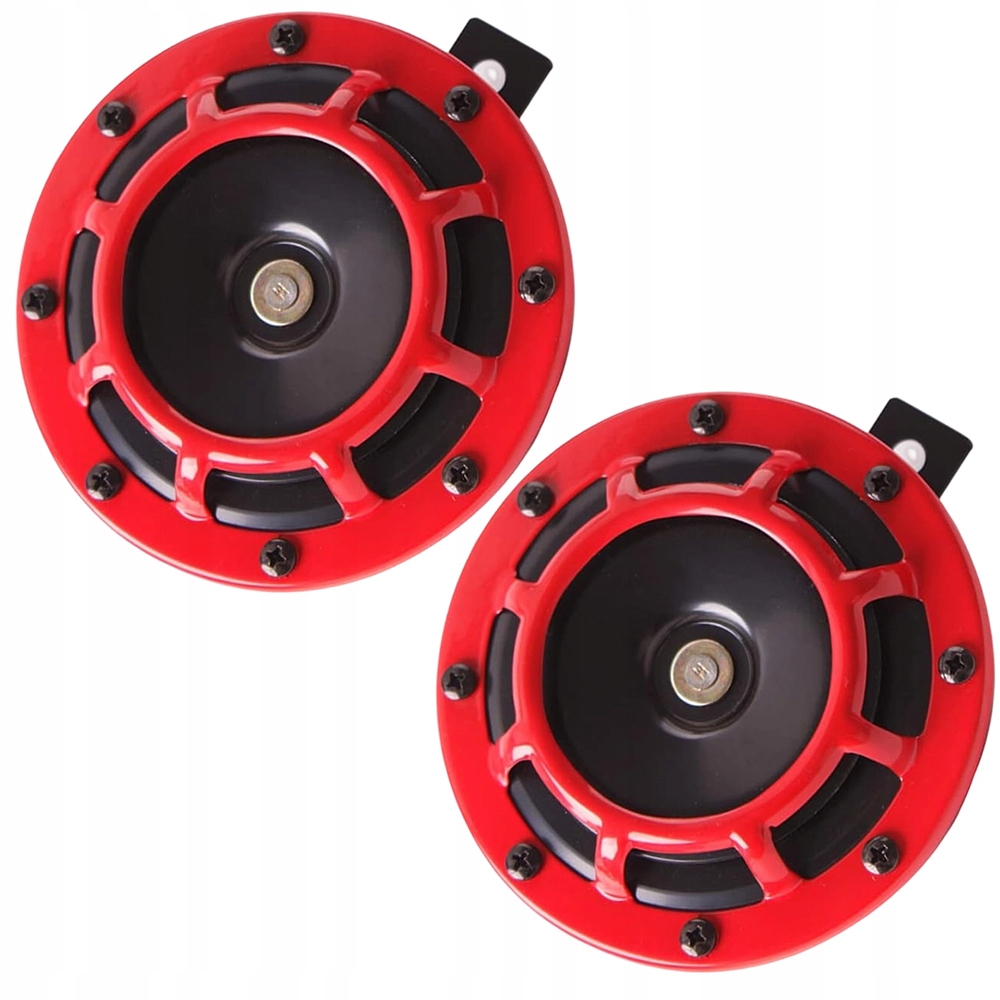 Klakson samochodowy 110dB, głośny klakson, klakson do auta, klakson motocyklowy, klakson czerwony, klakson uniwersalny 12V, klakson dwutonowy, bezpieczeństwo na drodze, klakson na prezent.