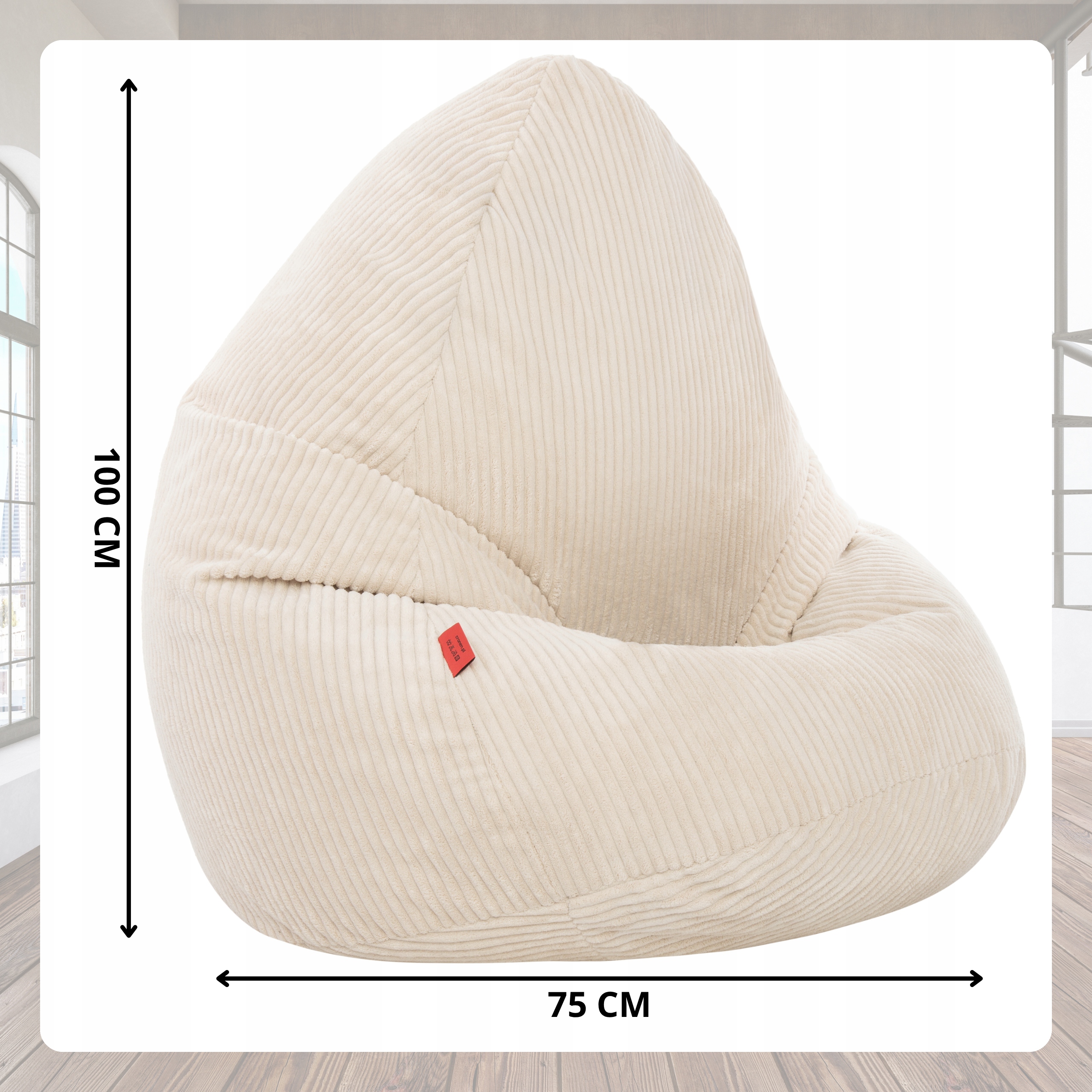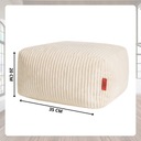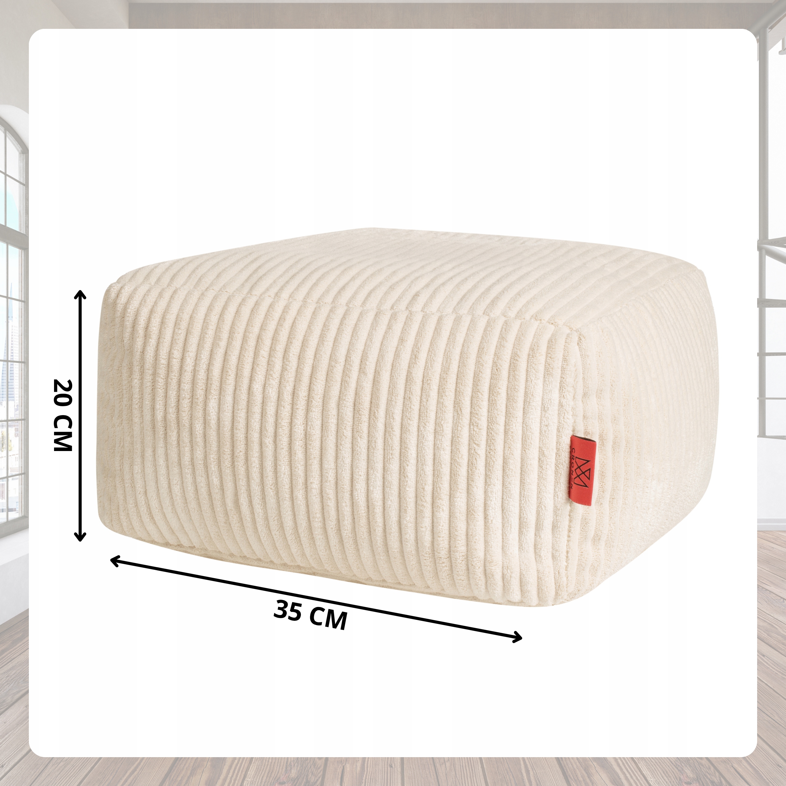 Początkowo pufa może wydawać się nieco twardsza – to normalne! Po kilku dniach użytkowania granulat styropianowy idealnie się ułoży, tworząc wyjątkowo miękkie siedzisko.