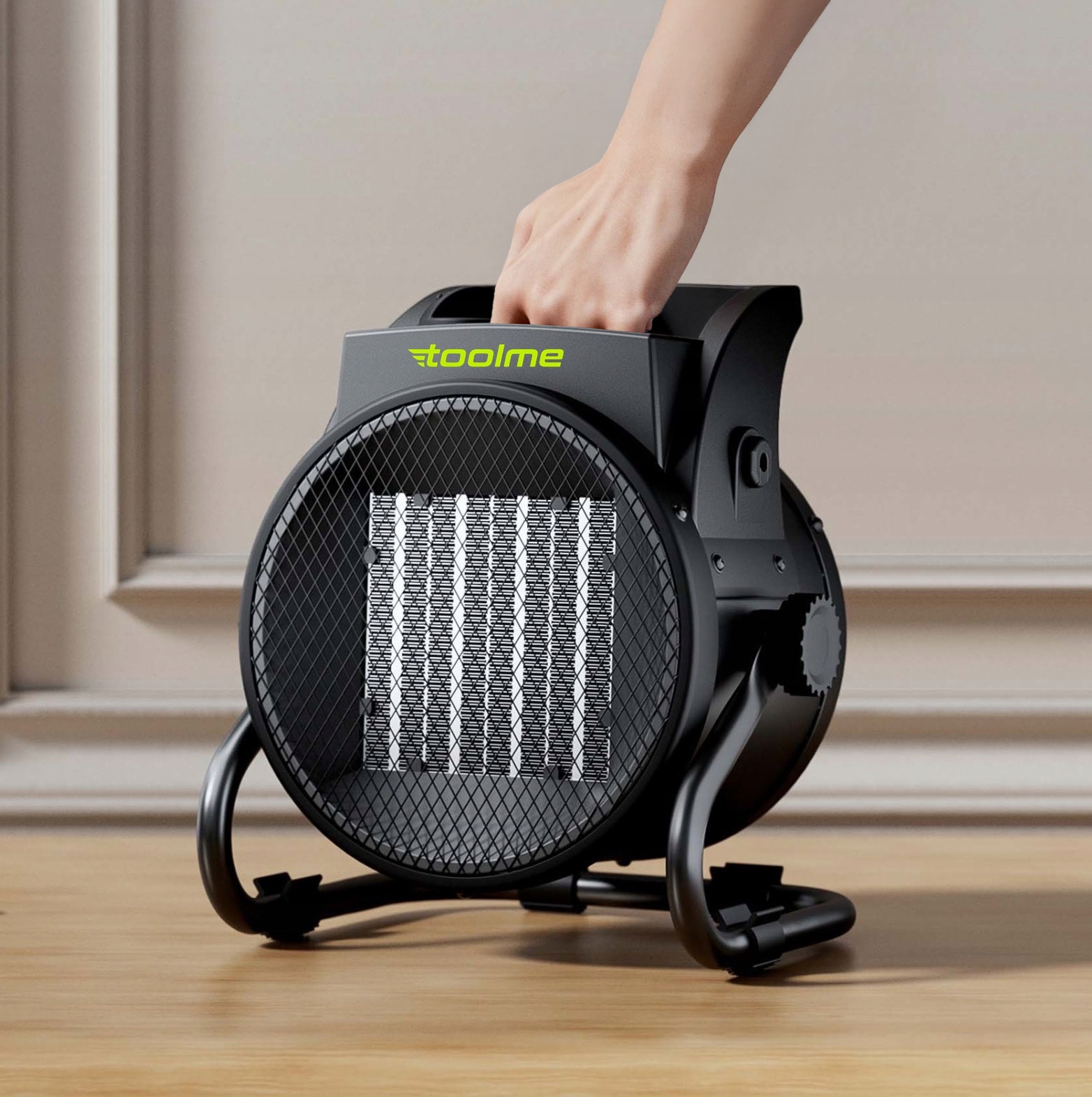 Nagrzewnica elektryczna Toolme posiada możliwość ustawienia kąta nawiewu w zakresie 45°.