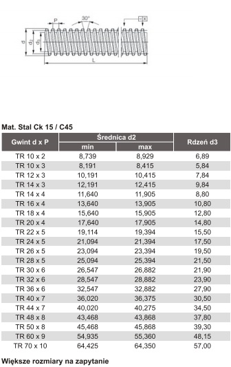Śruba trapezowa TR16x4 prawa L=500mm