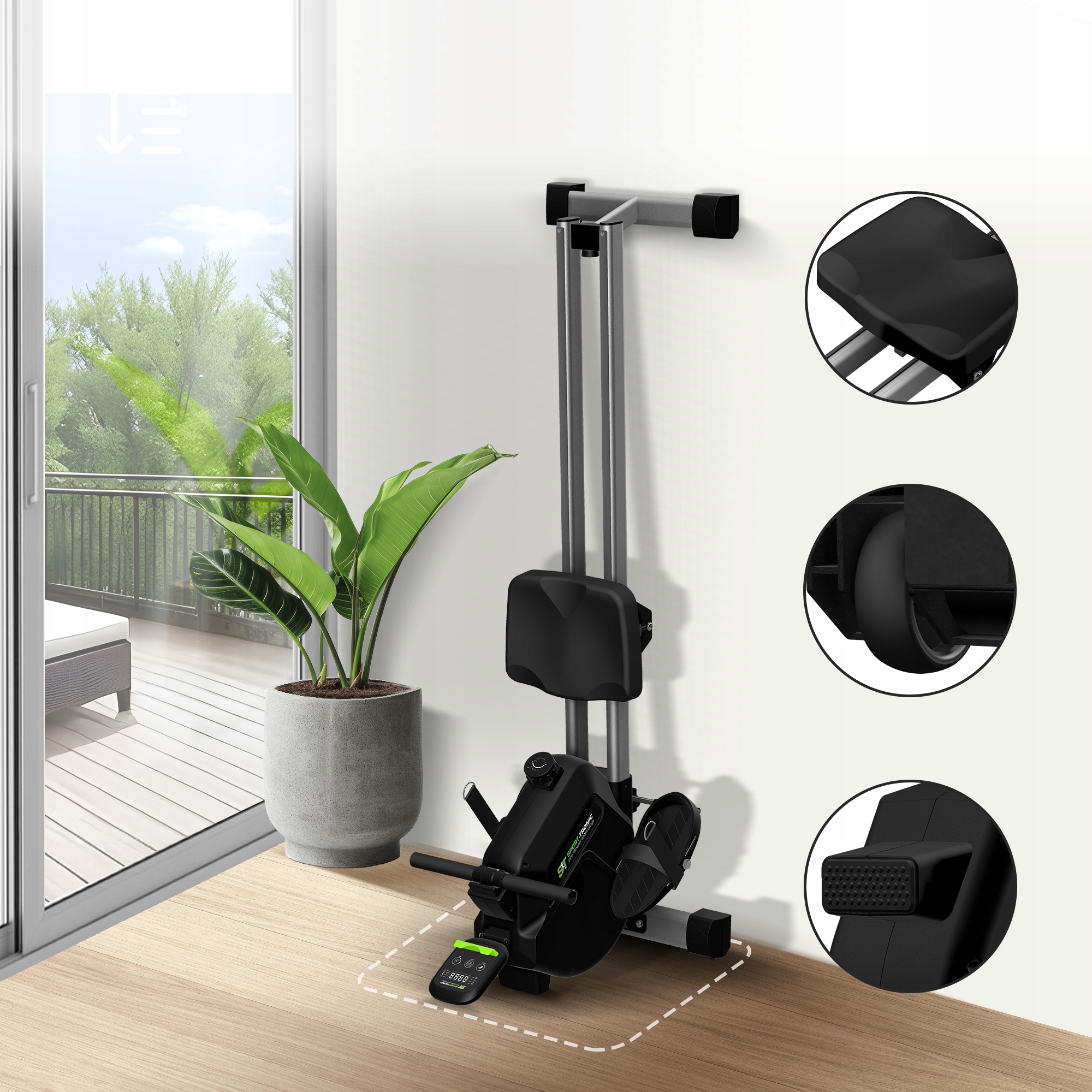 Masz mało miejsca w mieszkaniu? Ten wioślarz to idealne rozwiązanie! Po skończonym treningu możesz go przechowywać w pozycji pionowej, minimalizując zajmowaną przestrzeń.