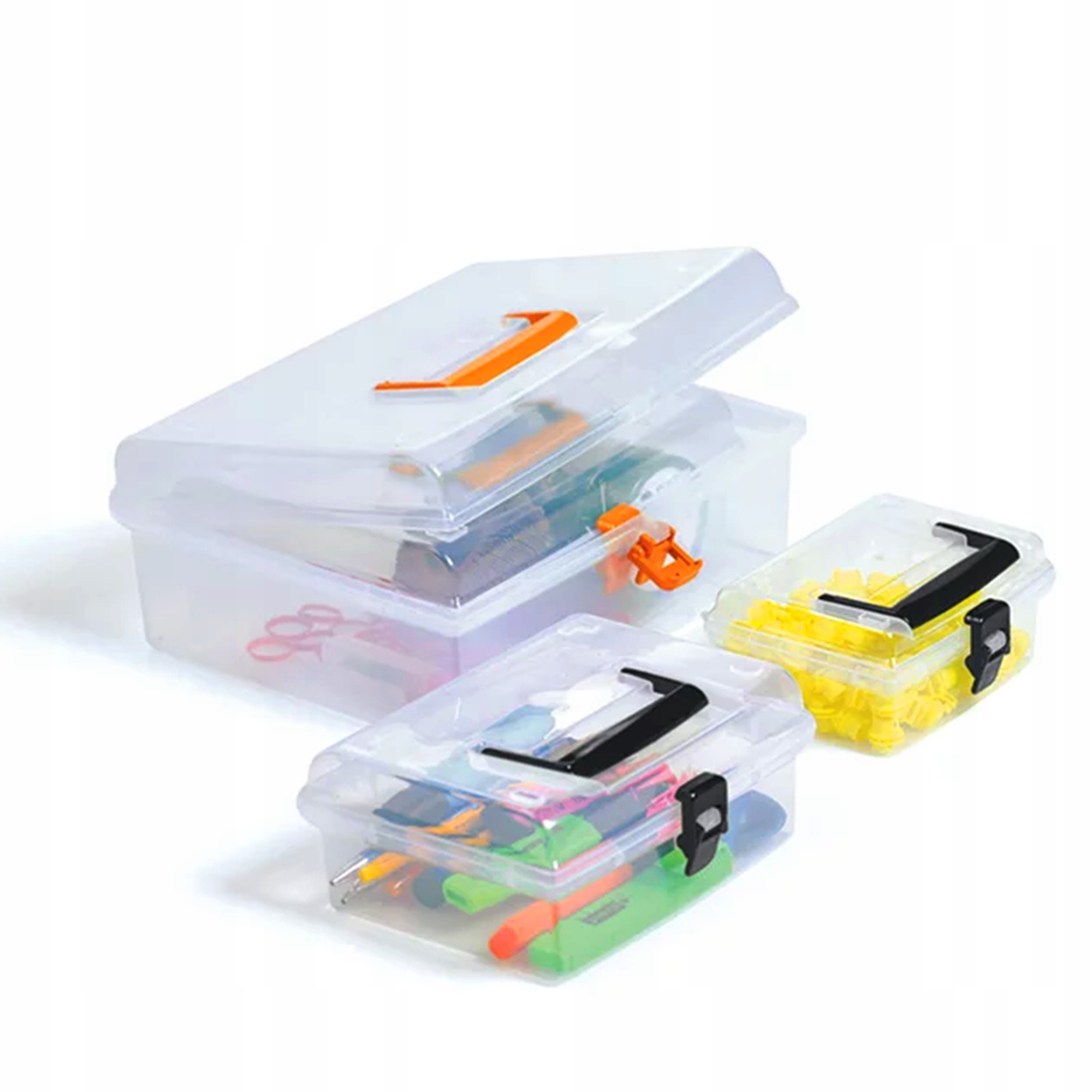 Dodatkowo, wyposażony on został w solidne plastikowe zamknięcie, skutecznie chroniące zawartość przed przypadkowym wysypaniem się elementów, oraz wygodny uchwyt umożliwiający łatwe przenoszenie organizera.