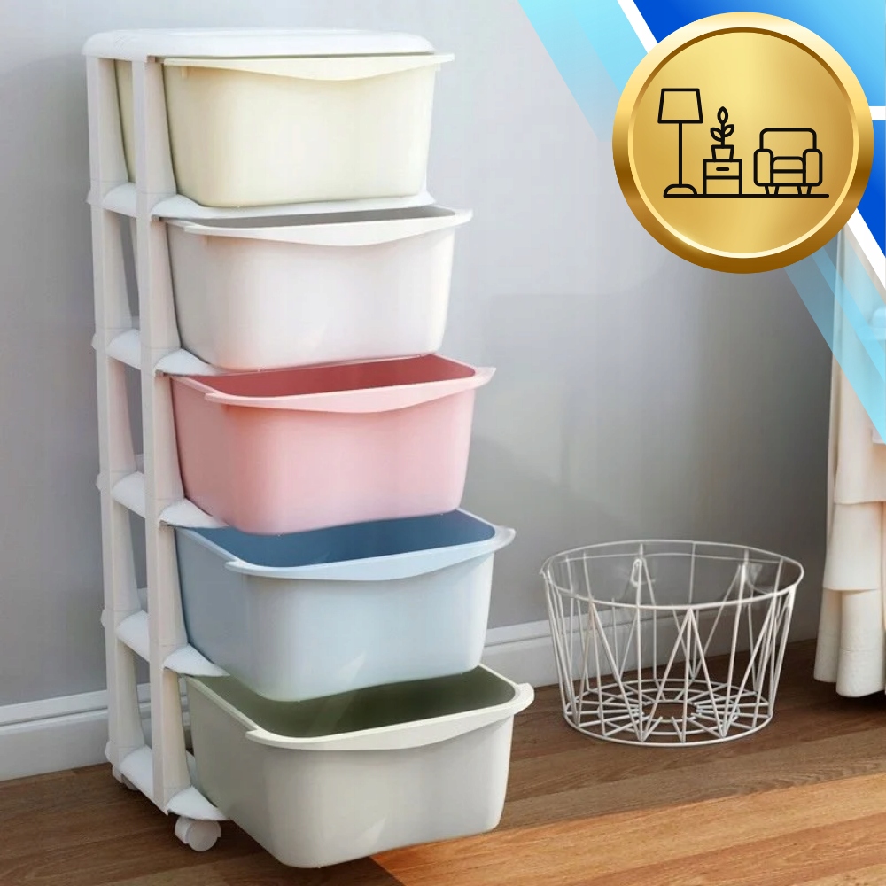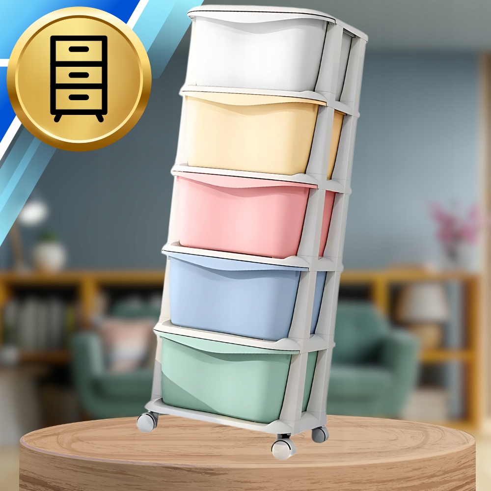 Składana Szafka Podłużna na Kółkach z 5 Kolorowymi Szufladami – Praktyczność i Styl w Jednym! ✨