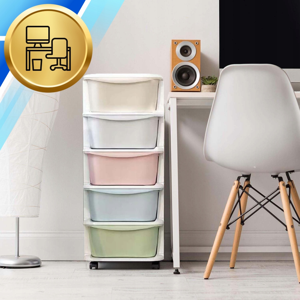 Wyposażona w pięć barwnych szuflad, które wniosą radość do wnętrza i ułatwią segregację. Kolory pomagają organizować zabawki, ubrania, akcesoria biurowe i inne drobiazgi.