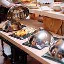 Stalowa taca do serwowania i przenoszenia potraw lub przekąsek. Wyposażona w zdejmowany klosz, który pozwala zachować odpowiednią temperaturę potraw, utrzymując je ciepłe lub chłodne. Doskonale sprawdza się do serwowania dań podczas spotkań towarzyskich. Łatwa w utrzymaniu czystości i wygodna w użytkowaniu. Znajdzie zastosowanie zarówno w domu, jak i w gastronomii. W celu odpowiedniej konserwacji nie zaleca się mycia w zmywarce do naczyń. Wyprodukowano zgodnie z europejskimi standardami.