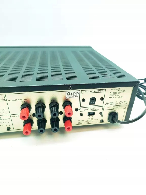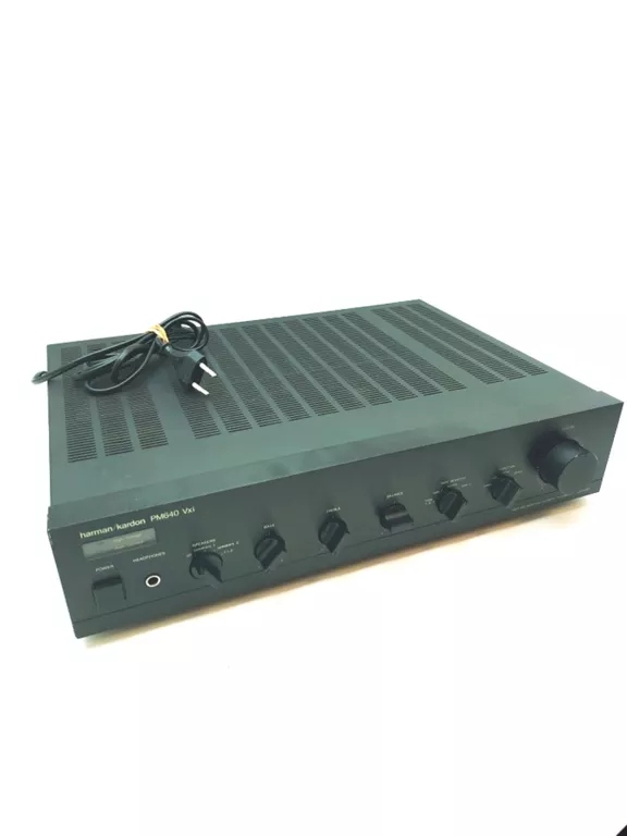 Harman Kardon PM640 Vxi klasyczny model z lat 80., ceniony za mocne, dynamiczne brzmienie i charakterystyczne wzornictwo tej amerykańskiej marki. Solidny sprzęt Hi-Fi o dużym zapasie mocy i bardzo dobrej scenie dźwiękowej.