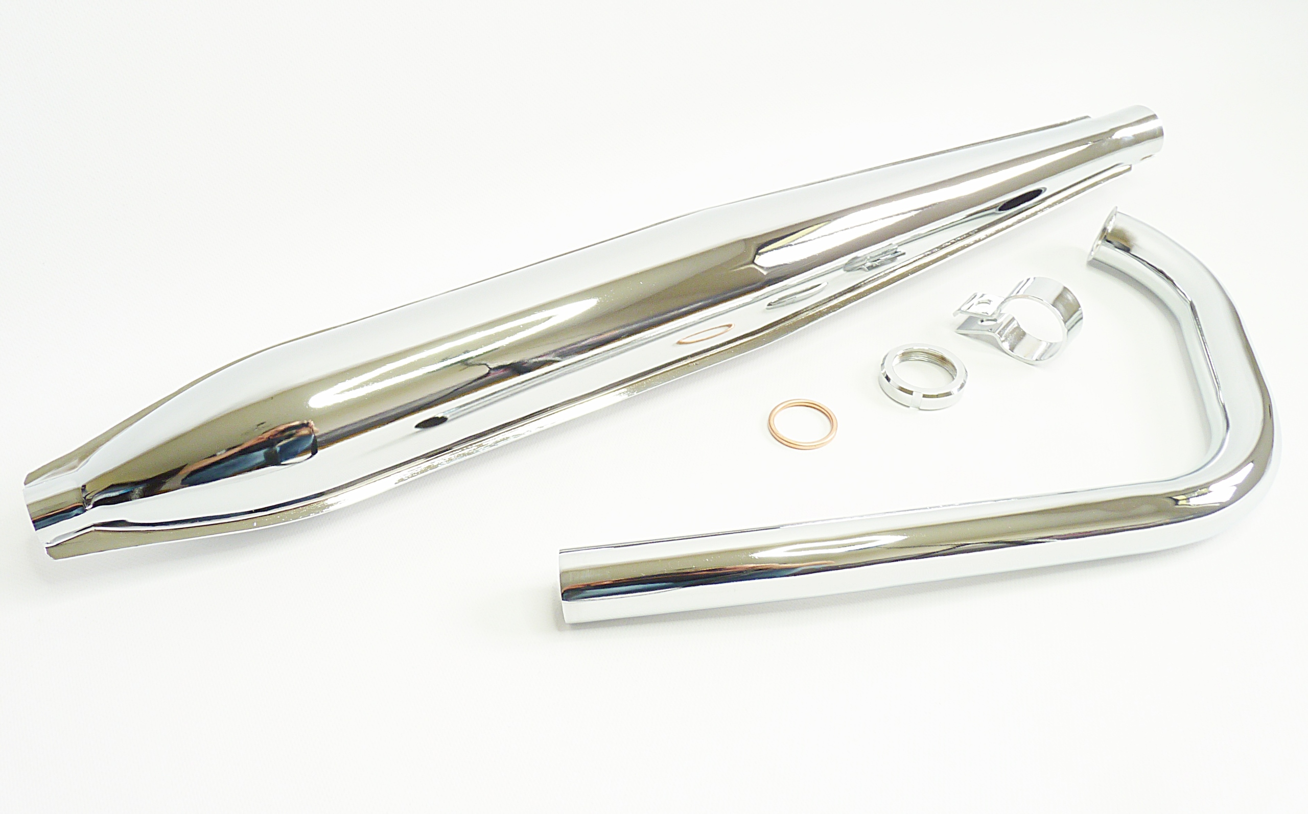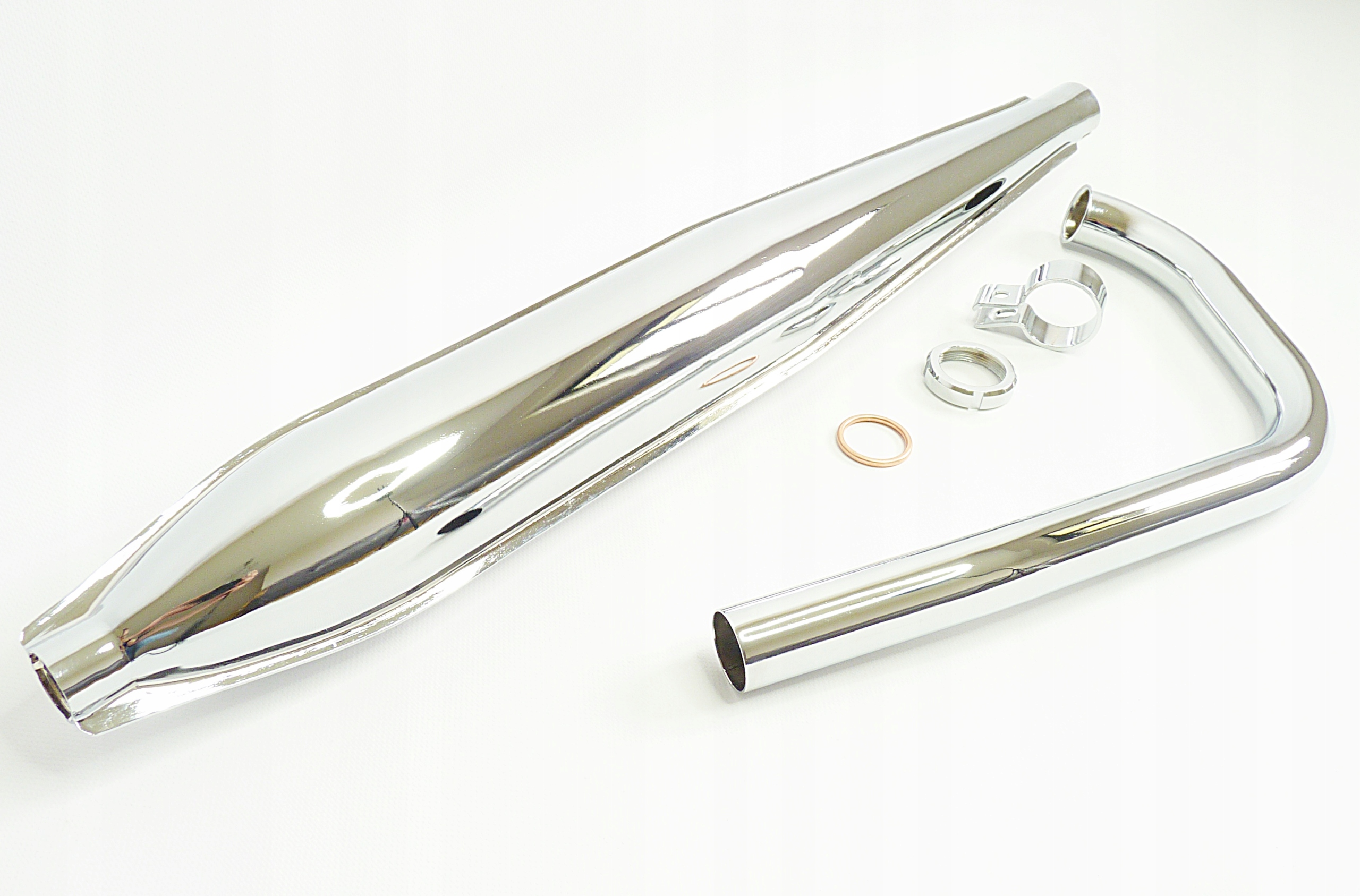 NOWY Tłumik wraz z uchwytami i kolankiem WSK 125 (jednoramówki)