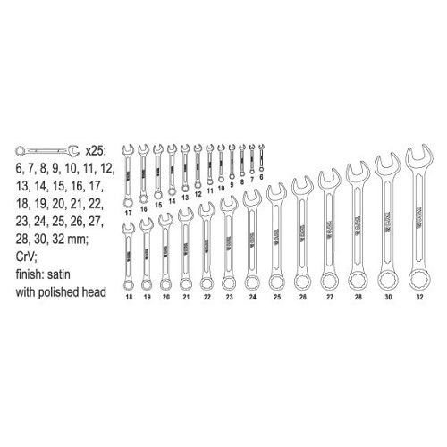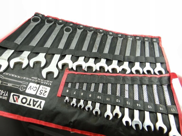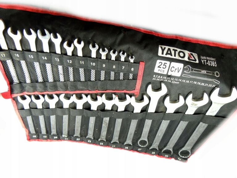 Wysokiej jakości klucze płasko-oczkowe marki YATO. Zestaw 25 kluczy w rozmiarach 6-32mm plus etui.