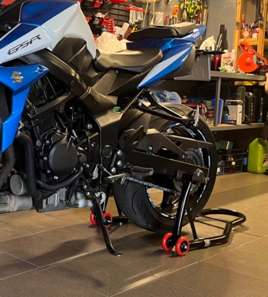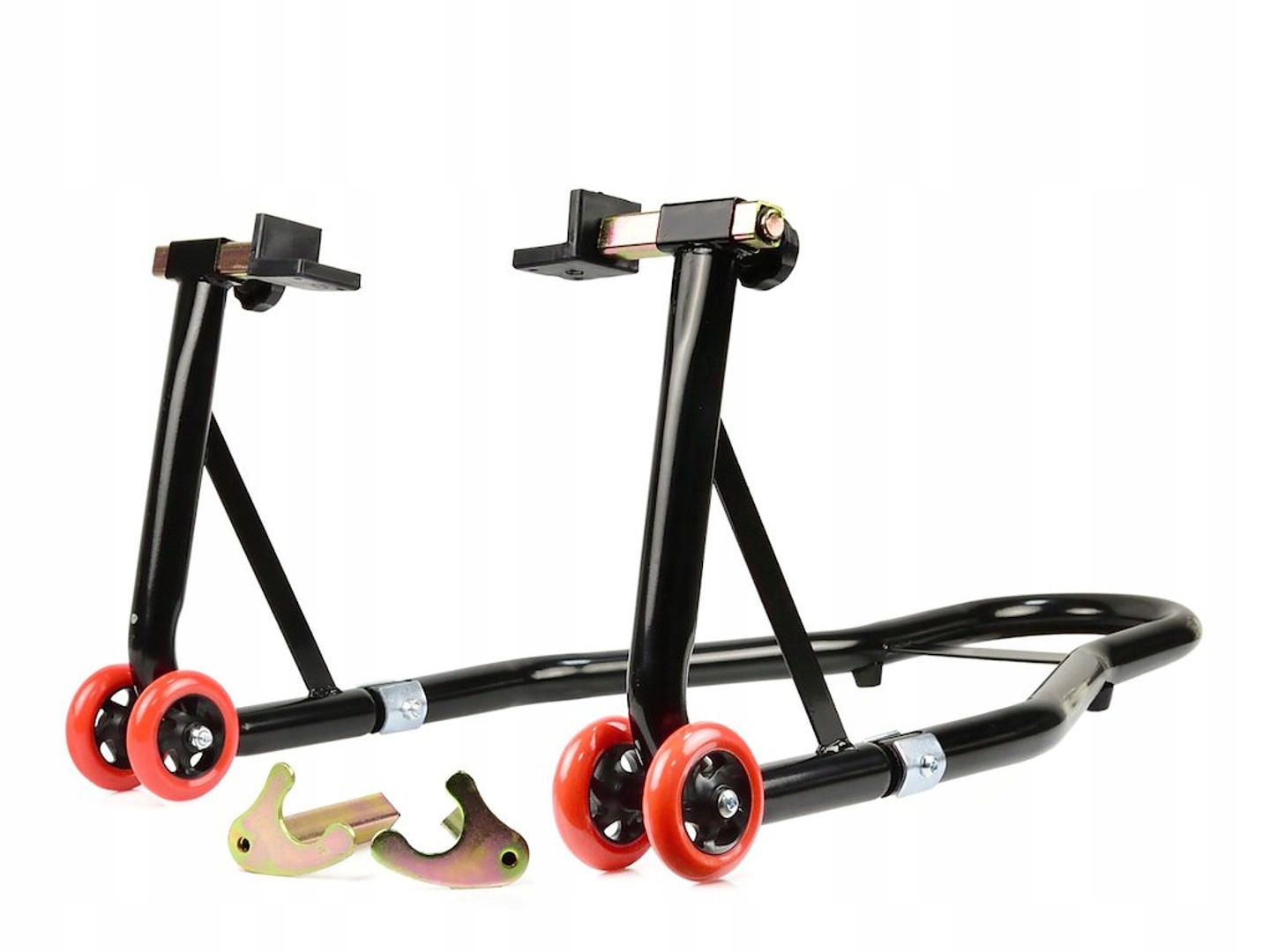 Stojak do kół motocykla umożliwiający łatwą naprawę i konserwację tylnego i przedniego koła.