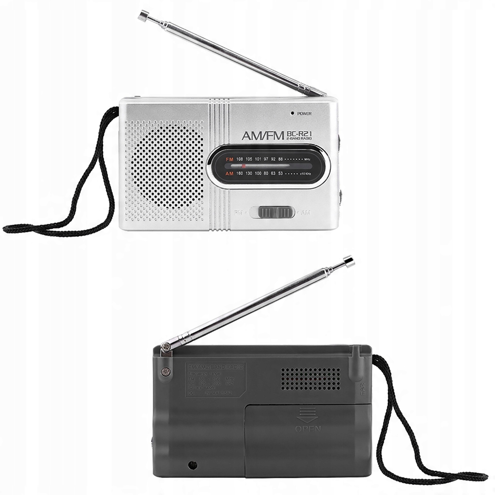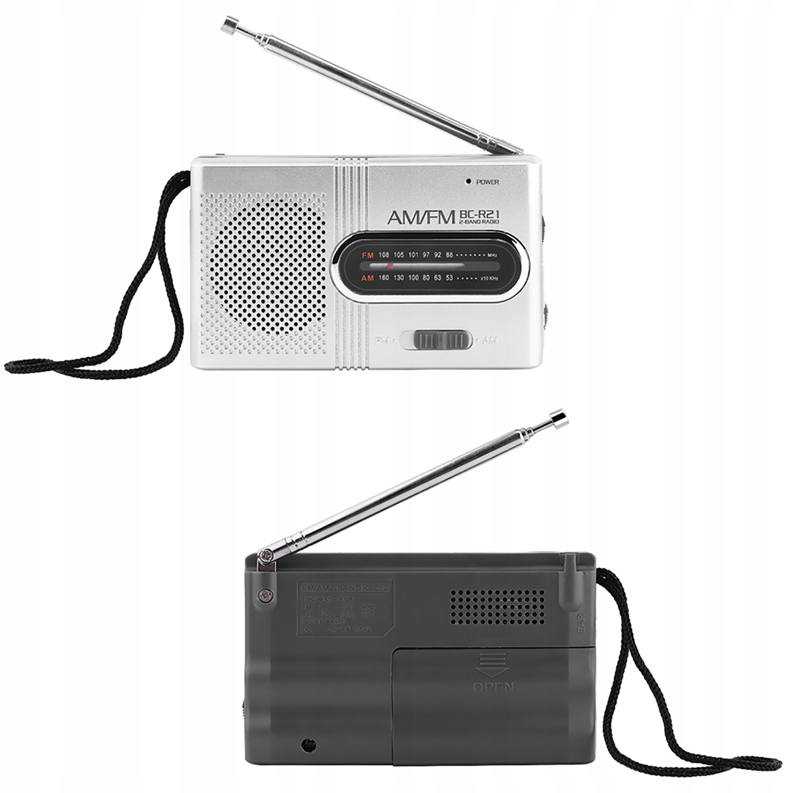 Pakiet zawiera:1 x przenośne mini radio AM/FM (brak baterii)