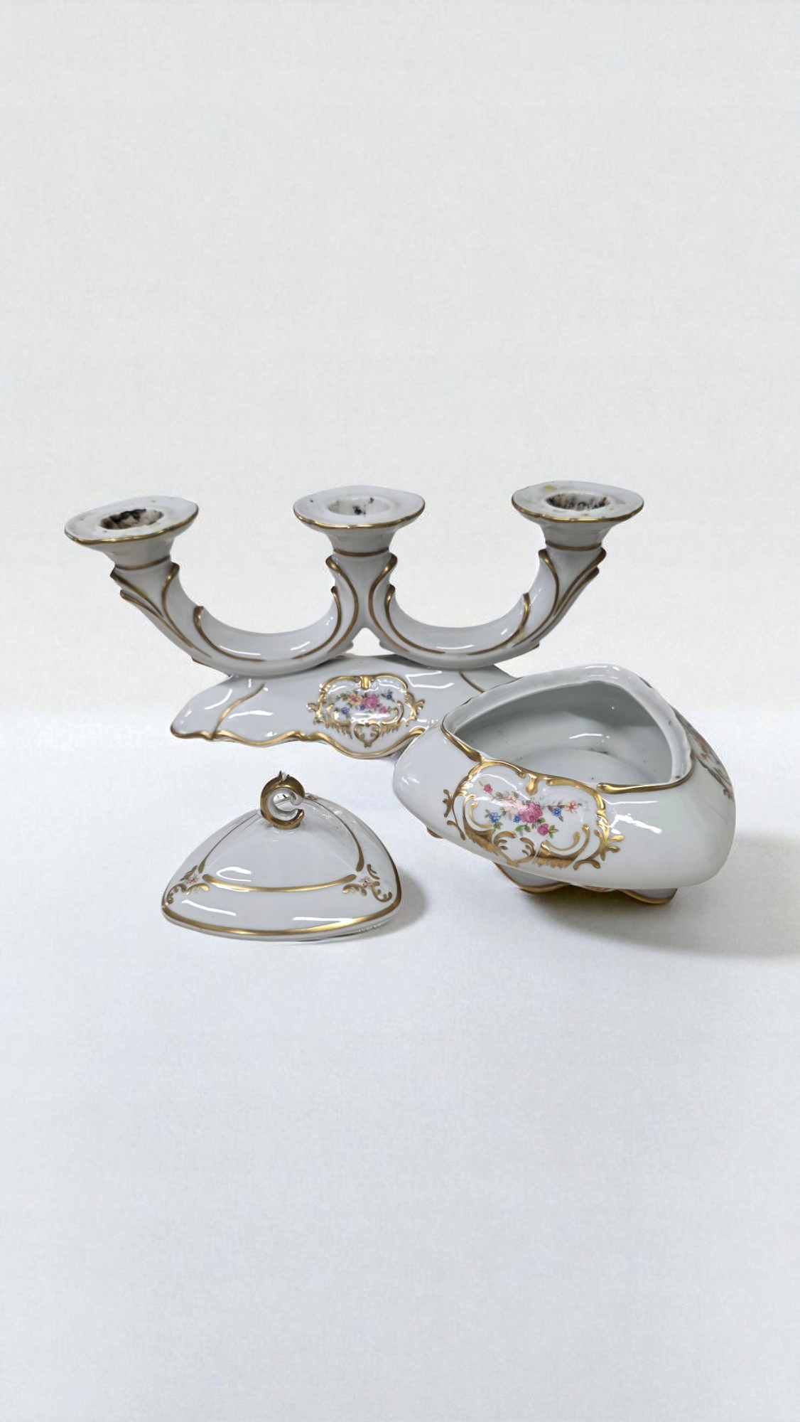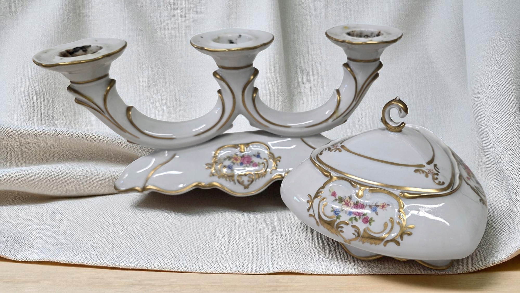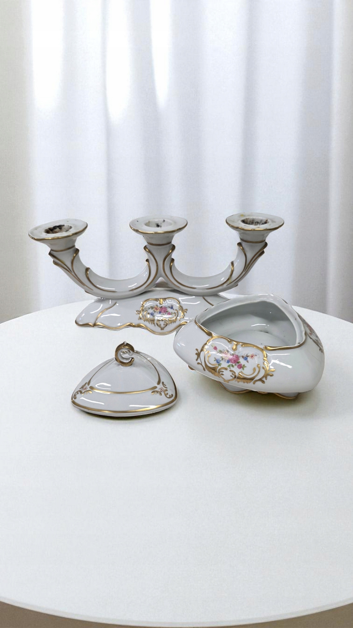 BOMBONIERA ŚWIECZNIK BOGUCICE PORCELANA ZESTAW