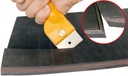 Jako nóż, idealnie tnie skórę, gumę i grube tworzywa. Jako przecinak, pozwala na ścinanie i ukosowanie krawędzi. Jako skrobak, błyskawicznie usuwa stare powłoki, kleje i zanieczyszczenia z gładkich powierzchni. Oszczędzasz miejsce, czas i pieniądze.