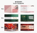 Najpierw wybierz wzór, następnie na pierwszej stronie zamieść swoje logo + tekst. Na drugiej stronie masz możliwość modyfikacji pól na pieczątki (ilość, kształt, kolor) oraz zmianę ikonek (telefon, kontakt, lokalizacja, strona www, social media).
