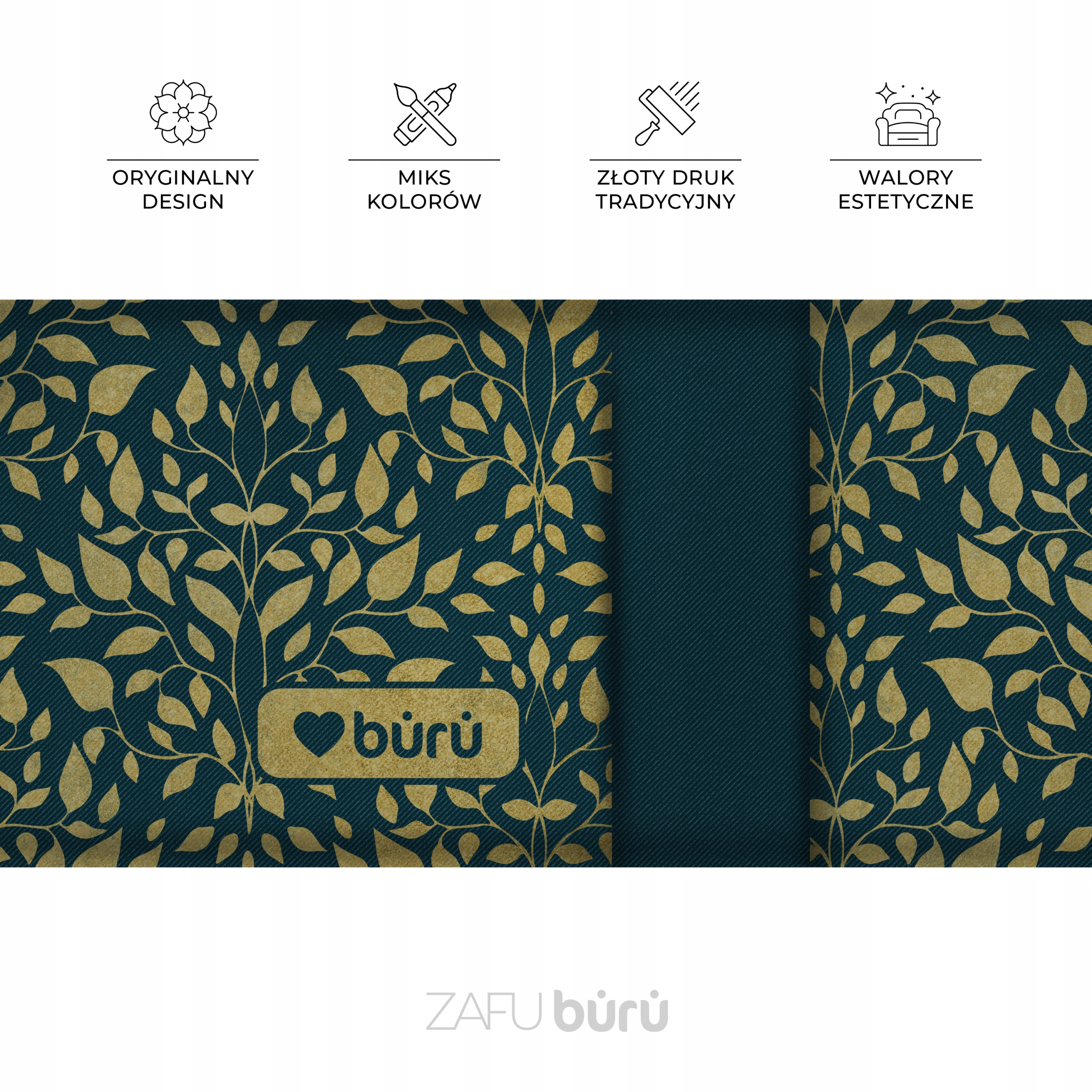 ✔️ Kolor: zielony ze złotym nadrukiem z boku