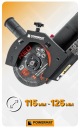 Akcesorium współpracuje z większością szlifierek kątowych o tarczach 115–125 mm oraz kołnierzu do 51 mm, pasując do większości urządzeń.