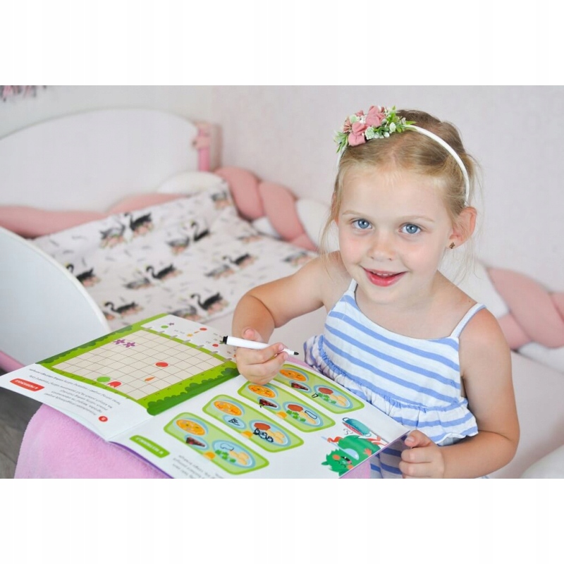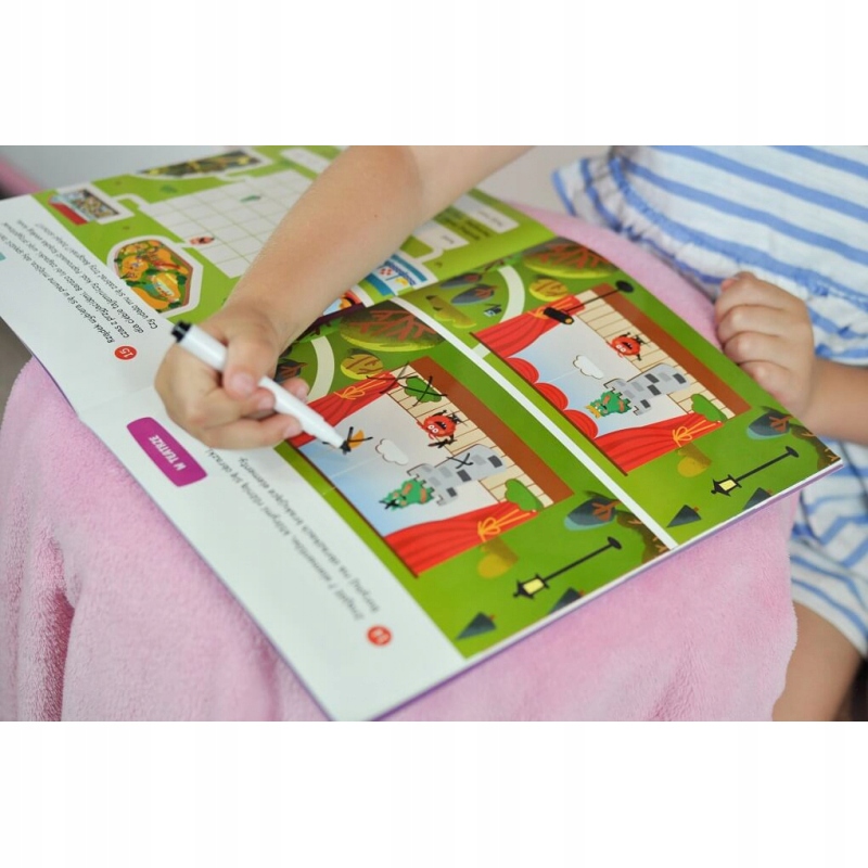 Różnorodne zadania przygotowują do nauki pisania, liczenia i kodowania bez komputera, rozwijają koncentrację i spostrzegawczość, a także ćwiczą pamięć wzrokową i orientację w przestrzeni.