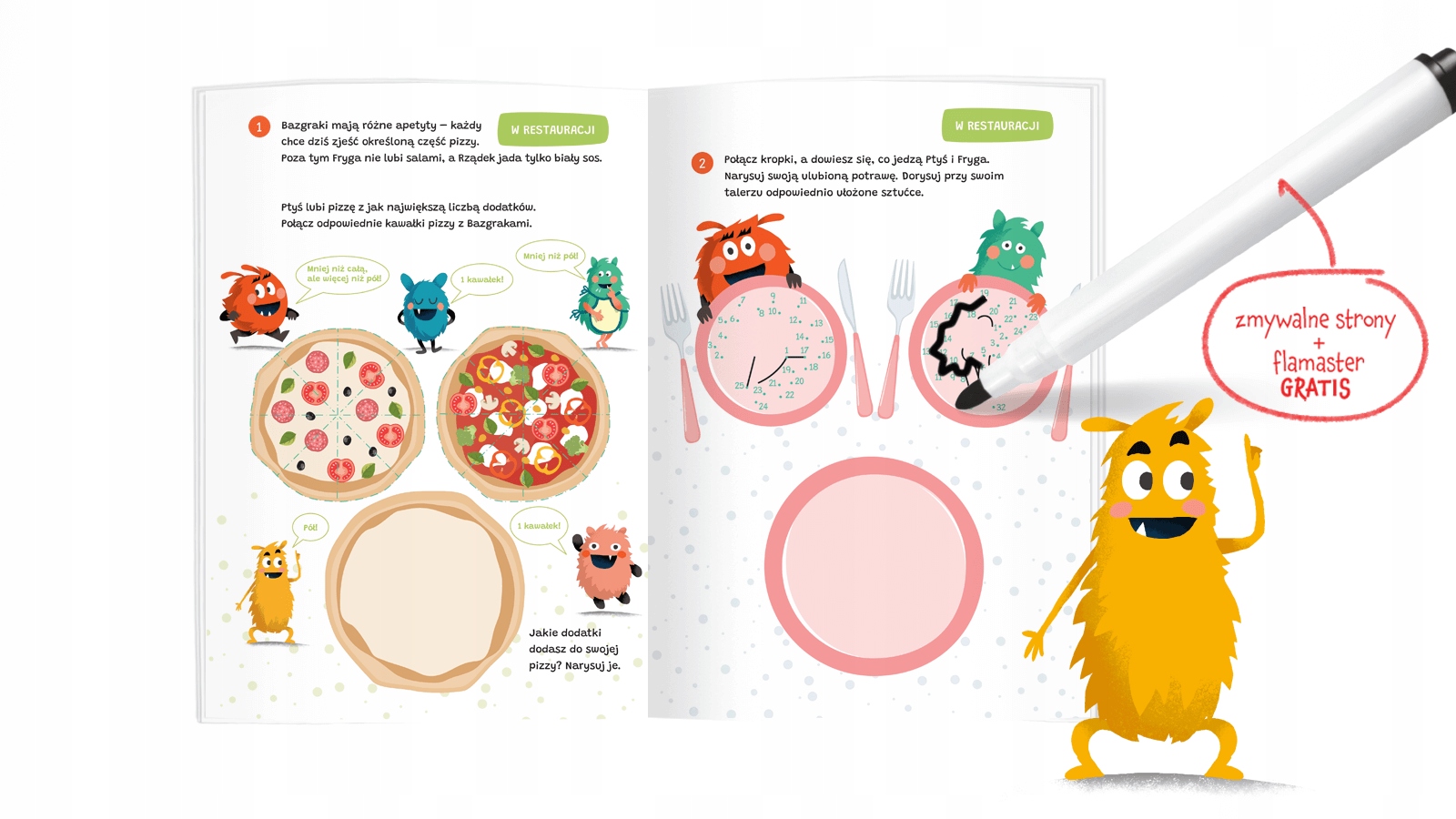 Dzięki dołączonemu do książki flamastrowisuchościeralnemu odpowiedzi można zmazywać i poprawiać bez końca, a wygodny, duży format A4 pozwala na swobodne rysowanie i bazgranie.