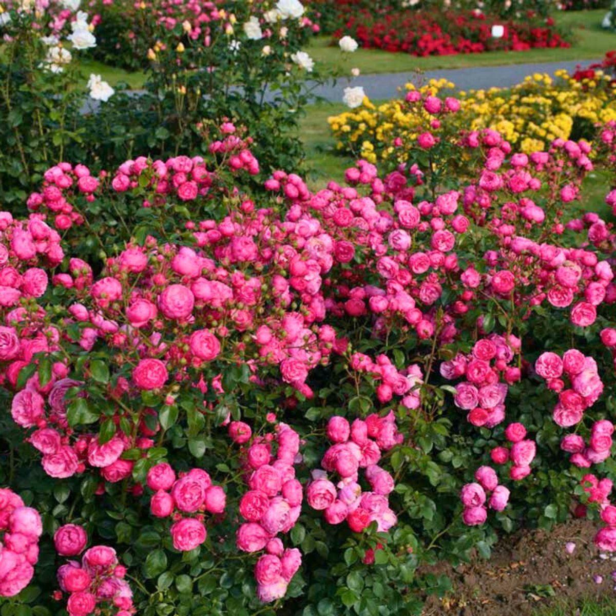 Kwiaty: Średnie (5–7 cm), pełne, kuliste, o intensywnie różowym kolorze. Kwiaty tworzą duże, gęste kwiatostany po kilka do kilkunastu sztuk na pędzie. Każdy kwiat przypomina miniaturową różę angielską – elegancki i trwały.