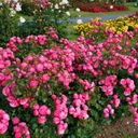 Róża rabatowa Pomponella to niezwykle urocza i popularna odmiana, wyróżniająca się kulistymi, różowymi kwiatami o wyjątkowym, romantycznym wyglądzie. Jej pełne, drobne kwiaty przypominają małe pompony, które gęsto pokrywają krzew przez całe lato. To odmiana o silnym wzroście, długim kwitnieniu i wyjątkowej odporności, dzięki czemu doskonale sprawdza się w ogrodach przydomowych, parkach oraz na rabatach kwiatowych.