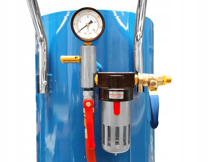 Manometr ułatwia kontrolę ciśnienia w zbiorniku zwiększając bezpieczeństwo w miejscu pracy.
