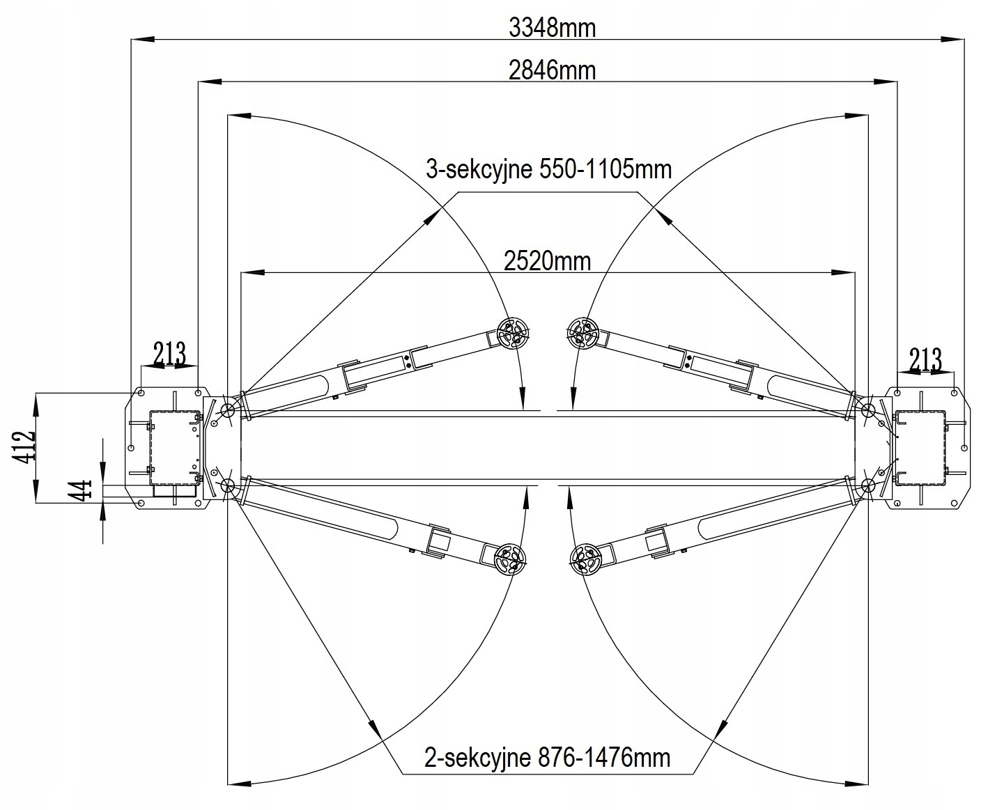 Głównymi zaletami prezentowanego modelu są precyzyjne wykonanie, solidna konstrukcja oraz niezawodne podzespoły ( wszystkie nasze podnośniki wyposażone są w aluminiowe pompy oleju ). Podnośnik wyposażony jest w system AMT. Automatyczna dźwignia AMT nie służy jedynie do podnoszenia i opuszczania pojazdów, ale jednocześnie zwalnia blokady bezpieczeństwa. Podnośnik TL0002 podnosi na 1900mm, ma niski przejazd 25mm, jest wyposażony w osłony kolumn oraz gniazdo 230V na skrzynce sterującej. Przednie ramiona posiadają 3-sekcyjną konstrukcję teleskopową. Najkrótszy rozstaw ramion (550mm) umożliwia podnoszenie małych pojazdów osobowych. Maksymalny rozstaw ramion (1476mm) jest niezbędny do stabilnego ustawienia i bezpiecznej obsługi aut dostawczych. Ramiona w podnośniku są asymetryczne i rozkładają się na zewnątrz, dzięki czemu możliwe jest zachowanie optymalnej równowagi podnoszonego pojazdu. W standardowym wyposażeniu podnośnika znajduje się komplet dystansów o wysokości 80mm. Są one niezbędne przy obsłudze aut dostawczych z plandeką, oraz samochodów terenowych podnoszonych za ramę. Podpory umieszczane pod pojazdem są wykręcane oraz wpinane na zatrzask do ramion i dystansów.