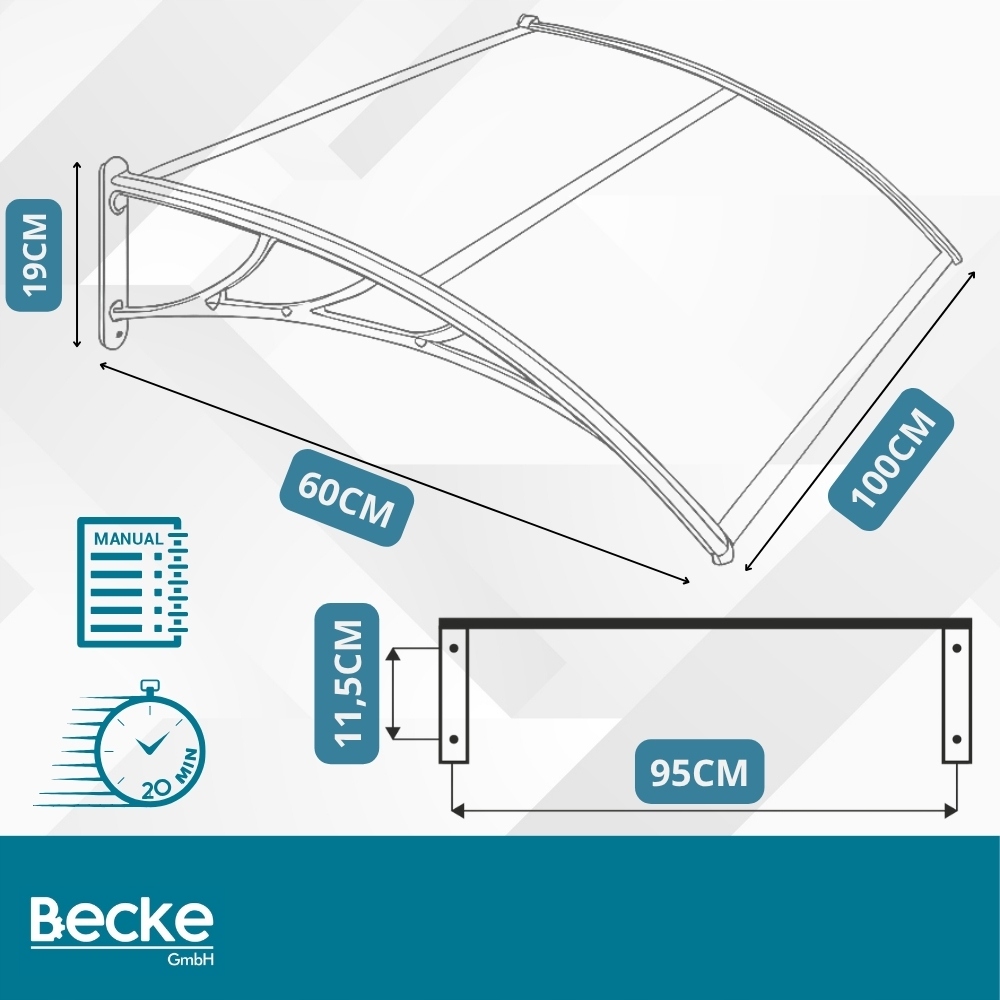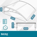 ☑️ Funkcjonalne i eleganckie zadaszenie łukowe zapewniające skuteczną ochronę przed deszczem, śniegiem i słońcem. Konstrukcja oparta na wytrzymałych materiałach, takich jak poliwęglan komorowy i aluminium, gwarantuje odporność na warunki atmosferyczne. Dzięki uniwersalnym wymiarom idealnie nadaje się do montażu nad drzwiami wejściowymi, oknami czy balkonem. Idealnie sprawdzi się również do ochrony bankomatów, witryn sklepowych, czy też wejść do klatek schodowych.