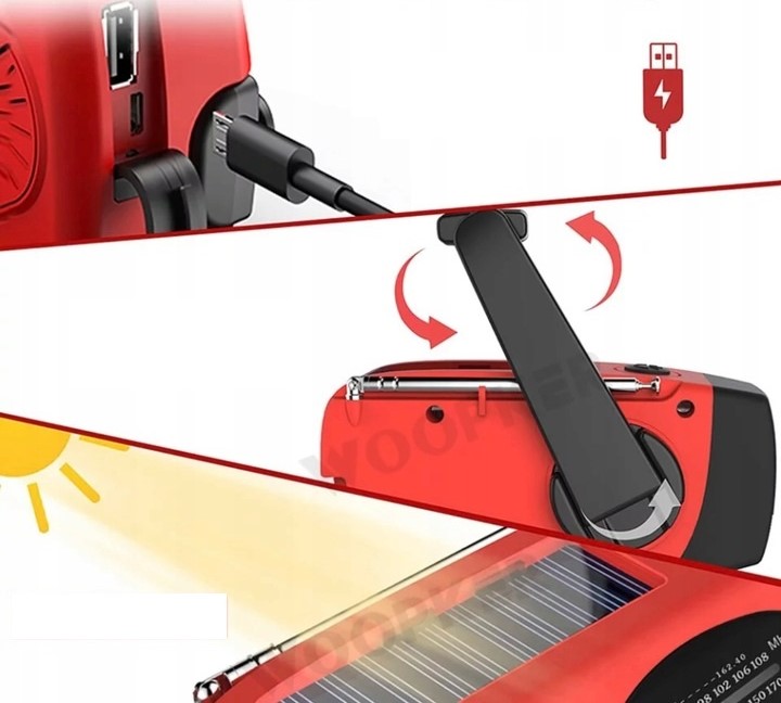 Odkryj nową jakość niezależności dzięki naszemu wielofunkcyjnemu urządzeniu, które łączy w sobie funkcje radia AM/FM, latarki oraz powerbanku do telefonu. Zasilane energią słoneczną (panel fotowoltaiczny) oraz ręcznym kręceniem korbką dynamo, to niezastąpione urządzenie w sytuacjach awaryjnych, podczas biwaków, podróży czy w domu przy awarii prądu.