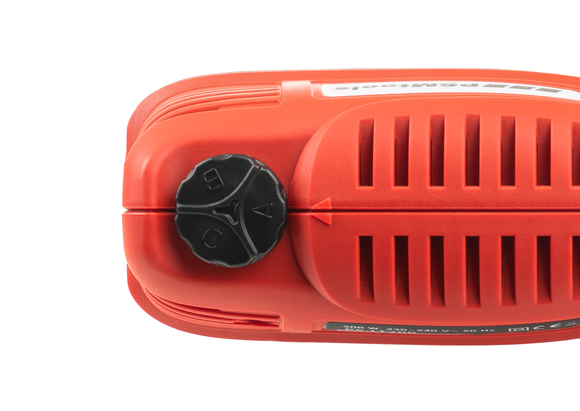 Regulacja temperatury – Pokrętło umożliwia łatwe dostosowanie temperatury (200°C, 350°C, 500°C) do różnych zadań, co czyni narzędzie wszechstronnym w zastosowaniu.