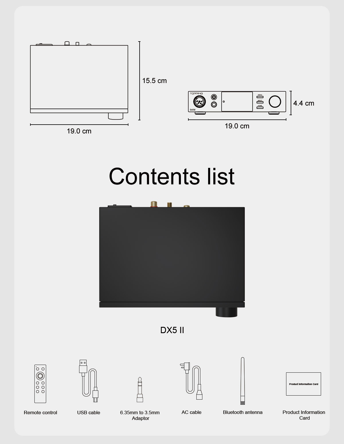 Dzięki pełnemu zestawowi opcji wejściowych - USB, optyczne, koncentryczne i Bluetooth - a także zbalansowanych wyjść RCA i XLR, DX5 II został zaprojektowany, aby sprostać wymaganiom audiofilów poszukujących elastycznego, wysokowydajnego HiFi w różnych scenariuszach odsłuchowych.