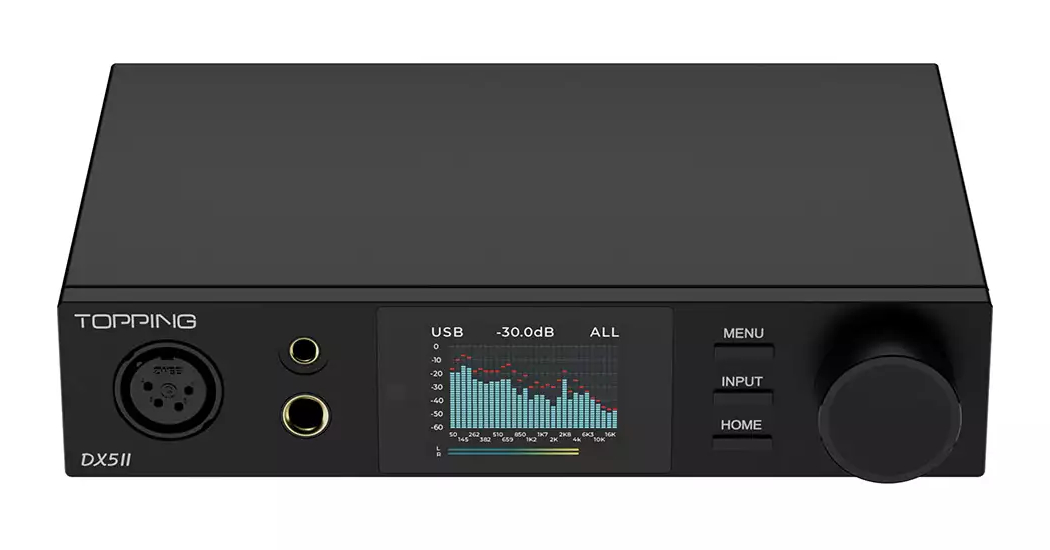 Jest wyposażony w dwa chipy ESS ES9039Q2M DAC, umożliwiające niezależne dekodowanie lewego i prawego kanału. Nowo opracowana architektura wzmacniania słuchawek X-Hybrid pozwala na w pełni zbalansowaną konstrukcję czterokanałowego wzmacniacza w kompaktowej obudowie. System osiąga zakres dynamiczny 133dB @1kHz i THD+N < 0,00006%. Dzięki zoptymalizowanej topologii obwodu, DX5 II oferuje znacznie zmniejszone zużycie energii i wytwarzanie ciepła, poprawiając ogólną wydajność obwodu. Dzięki ultra-niskiemu poziomowi hałasu 1,8uVrms i potężnej mocy wyjściowej 7600mW x 2, DX5 II jest w stanie w pełni napędzić nawet najbardziej wymagające słuchawki. Urządzenie wprowadza zupełnie nowe możliwości Aurora UI i PEQ (Parametric EQ), umożliwiając użytkownikom dostosowanie ich wrażeń słuchowych z łatwością i precyzją.