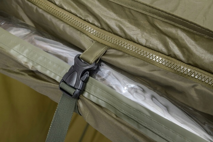 Parasol Mivardi Session Umbrella XL z pełnym pokryciem bocznym to parasol o kwadratowym kształcie i ogromnych rozmiarach, który może pomieścić dwie duże leżanki wędkarskie. Jego konstrukcja i użyte materiały zapewniają wysoką sztywność, stabilność i trwałość, szczególnie w silnych wiatrach. Wysokiej jakości baldachim z nylonu oferuje kolumnę wodną 8000mm i całkowicie zaklejone szwy. Boczny panel jest przymocowany dookoła mocnym zamkiem błyskawicznym, a przedni panel z dużym oknem można łatwo rozpiąć i zwinąć. W warunkach wietrznych parasol można ustabilizować za pomocą czterech lin kotwicznych.